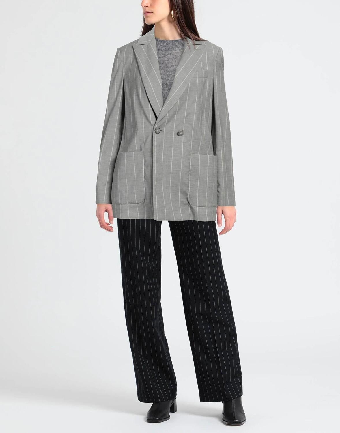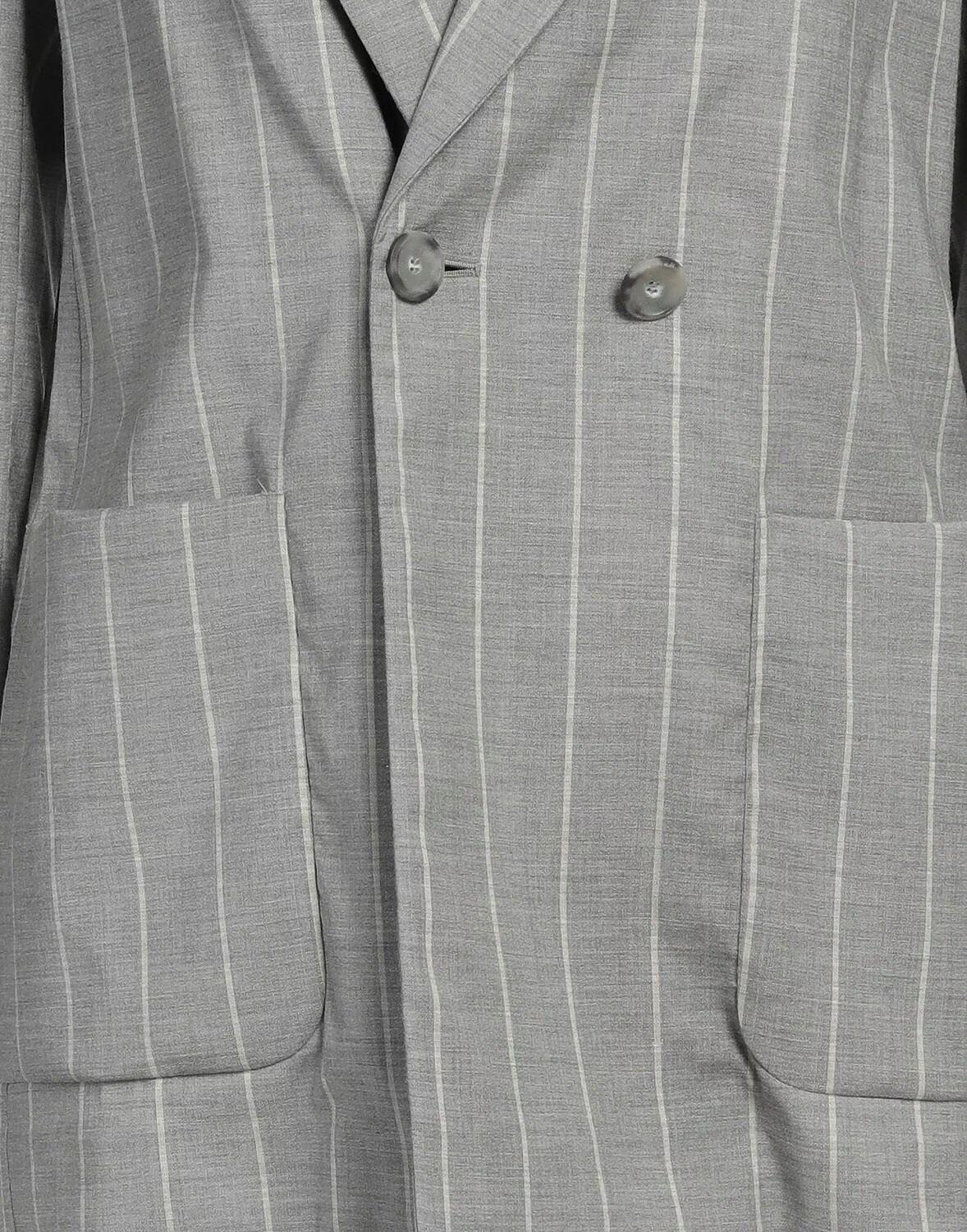 Классная шерсть, логотип бренда, пояс, полоски, воротник с лацканами, двубортный, длинные рукава, внутренняя часть на подкладке, множество карманов, разрез сзади, стрейч, двубортный пиджак маленького размера