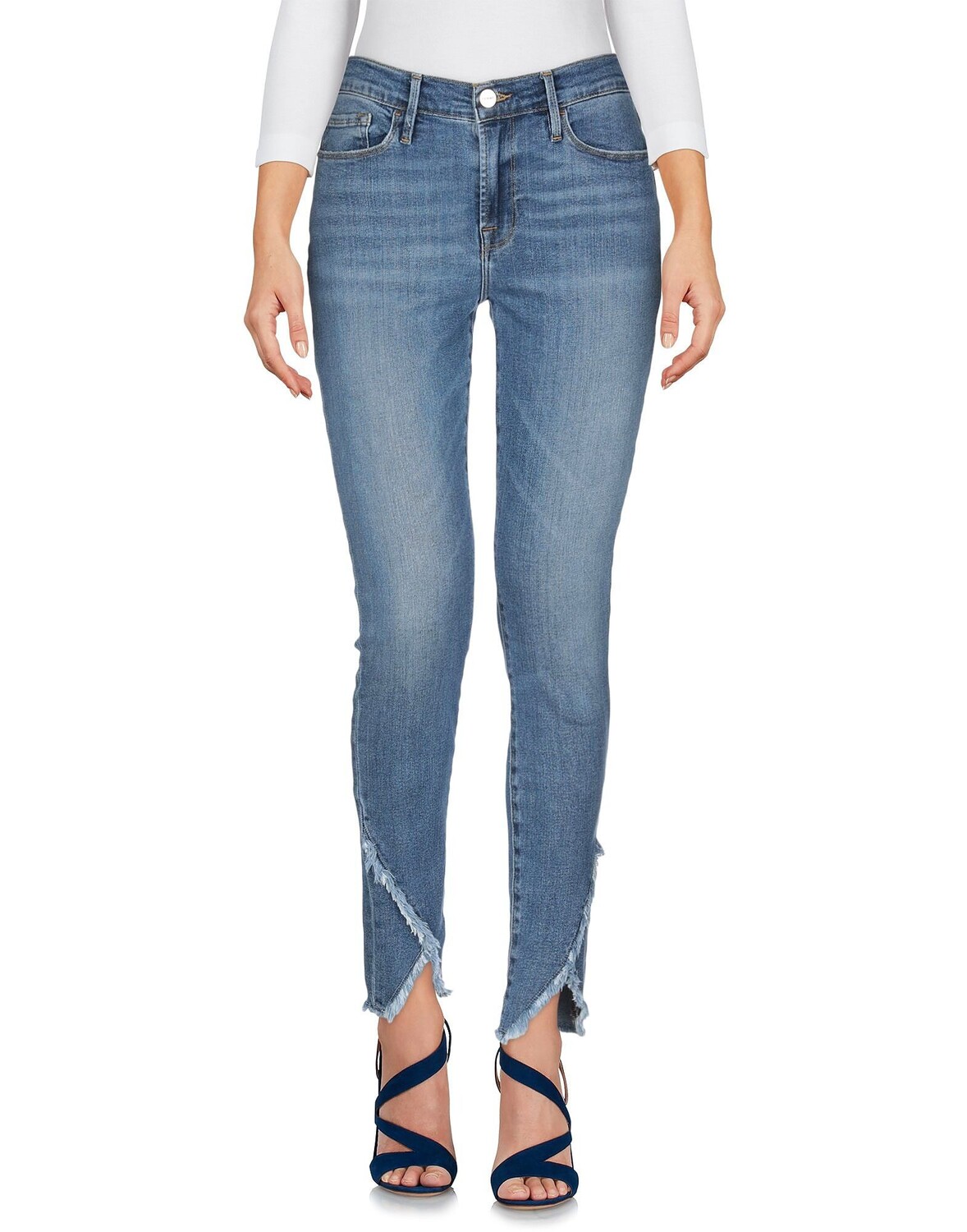 Джинсовая ткань, бахрома, одноцветное изделие, средняя стирка, средняя посадка, застежка спереди, пуговицы, молния, множество карманов, стрейч