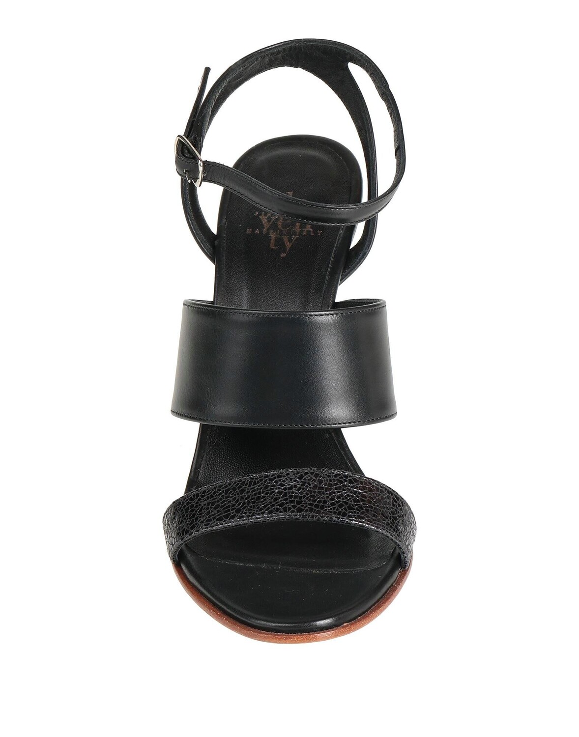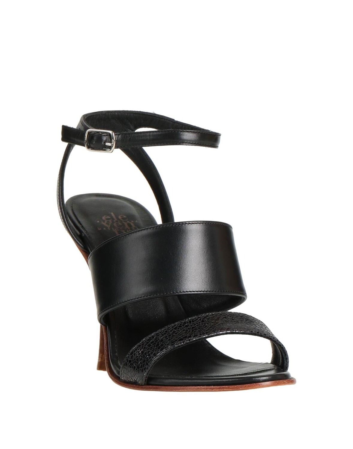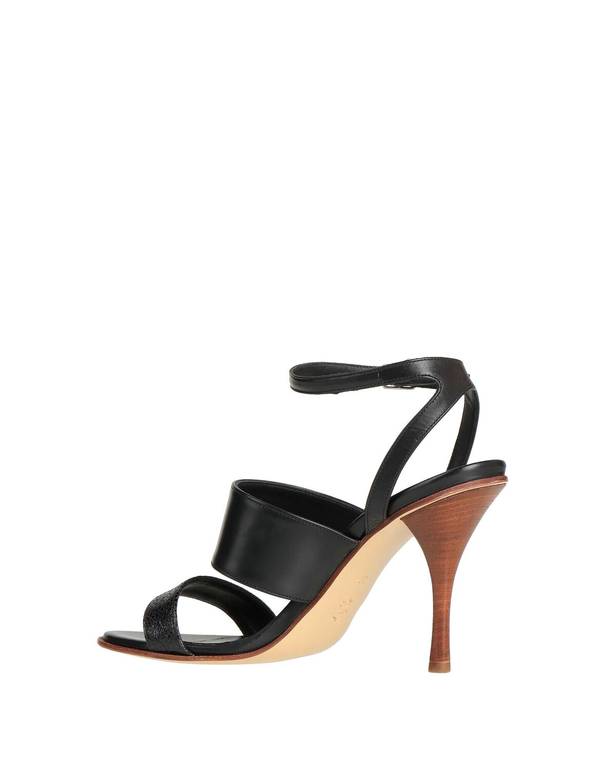 Кожа, без аппликаций, одноцветное изделие, кожаная подкладка, застежка на пряжке, скругленный носок, каблук-шип, кожаная подошва, содержит нетекстильные части животного происхождения, сандалии с ремешком на щиколотке