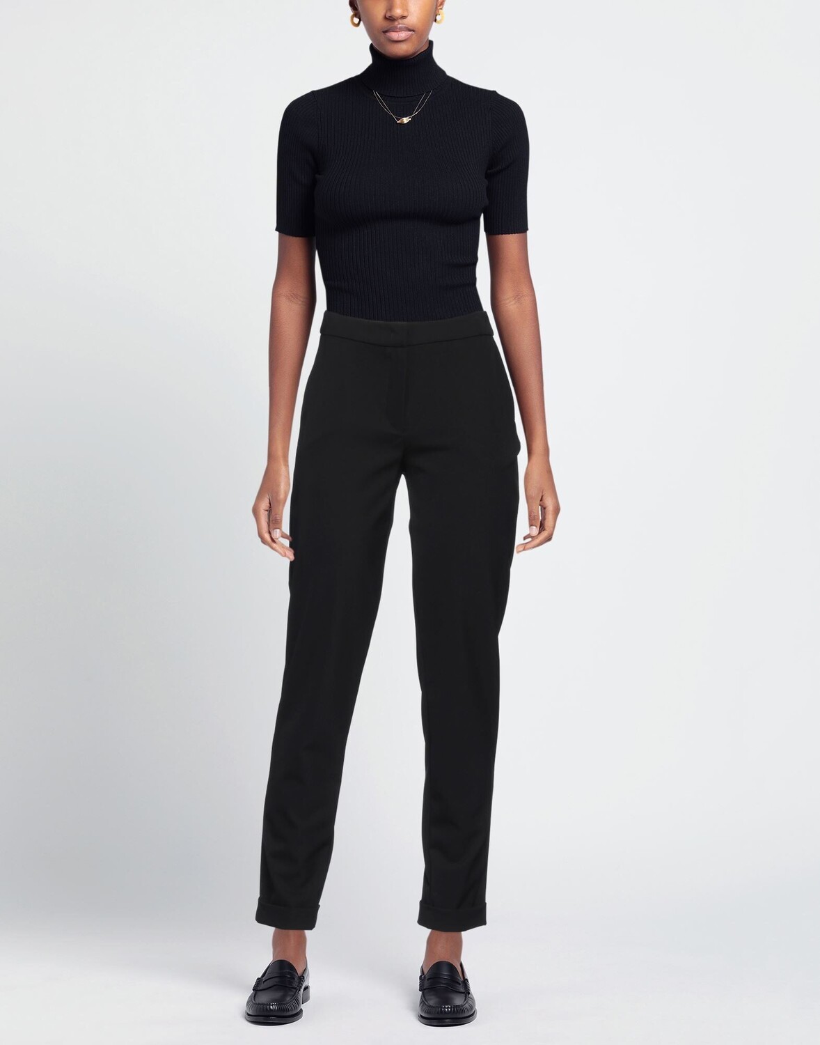 Трикотаж, без аппликаций, однотонный цвет, средняя посадка, зауженные брючины, стандартный крой, с двойными пуговицами, манжеты по краю, множество карманов, эластичный, ручная стирка или химчистка, сушка в стиральной машине, не отбеливать, брюки чинос, маломерный размер этой марки.