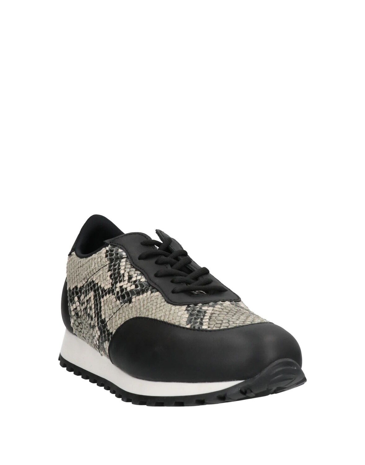 Кожа, принт змеиной кожи, логотип бренда, разноцветный рисунок, внутри на подкладке, шнуровка, скругленный носок, плоская поверхность, резиновая подошва с тиснением, содержит нетекстильные части животного происхождения, низкие кеды и кроссовки