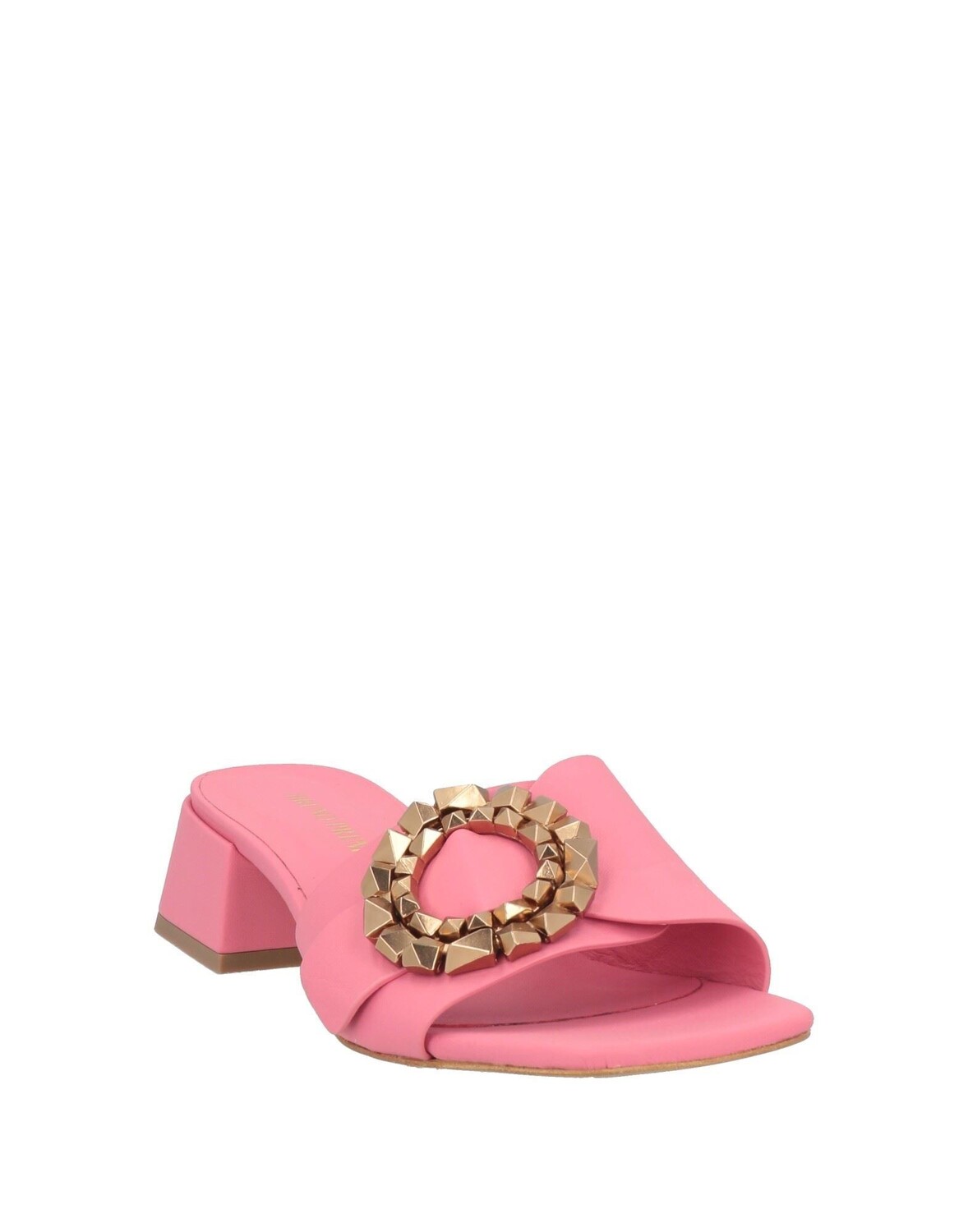 Кожа, украшение, одноцветное изделие с аппликациями, кожаная подкладка, квадратный носок, квадратный каблук, обтянутый каблук, резиновая подошва, содержит нетекстильные части животного происхождения, шлепанцы