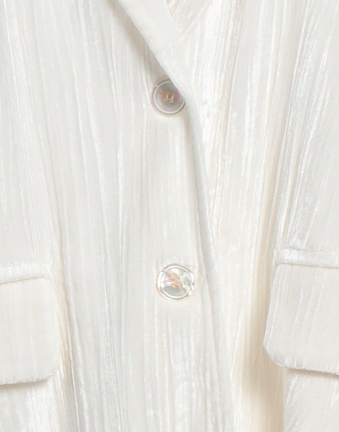 Бархат, без аппликаций, одноцветное изделие, воротник с лацканами, длинные рукава, внутри на подкладке, застежка на пуговицы, карманы с клапанами, химчистка, нельзя отбеливать, нельзя сушить в стиральной машине, однобортный пиджак