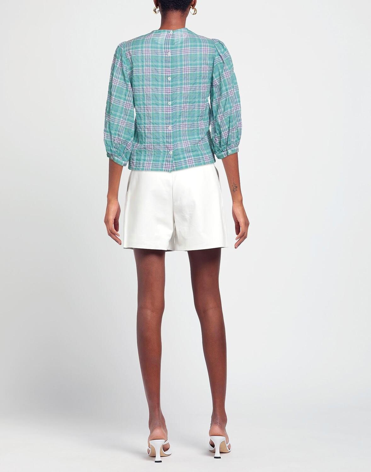 Полотняное переплетение, Клетка, Рукава длиной 3/4, Круглый воротник.