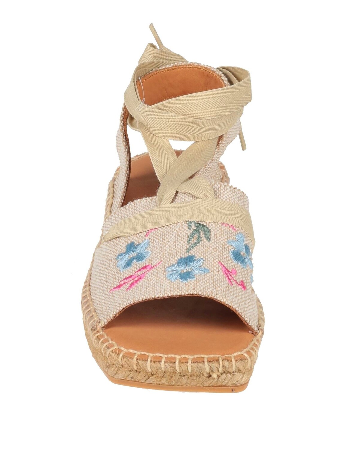 Парусина, вышивка, цветочный принт, подкладка из кожи, завязки на щиколотке, квадратный носок, без каблука, резиновая подошва, содержит нетекстильные части животного происхождения, сандалии-эспадрилья