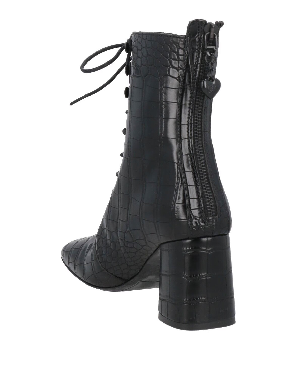Ткань с покрытием, логотип бренда, одноцветное изделие, подкладка из кожи, застежка-молния, квадратный носок, квадратный каблук, резиновая рифленая подошва, содержит нетекстильные части животного происхождения, ботильоны на шнуровке