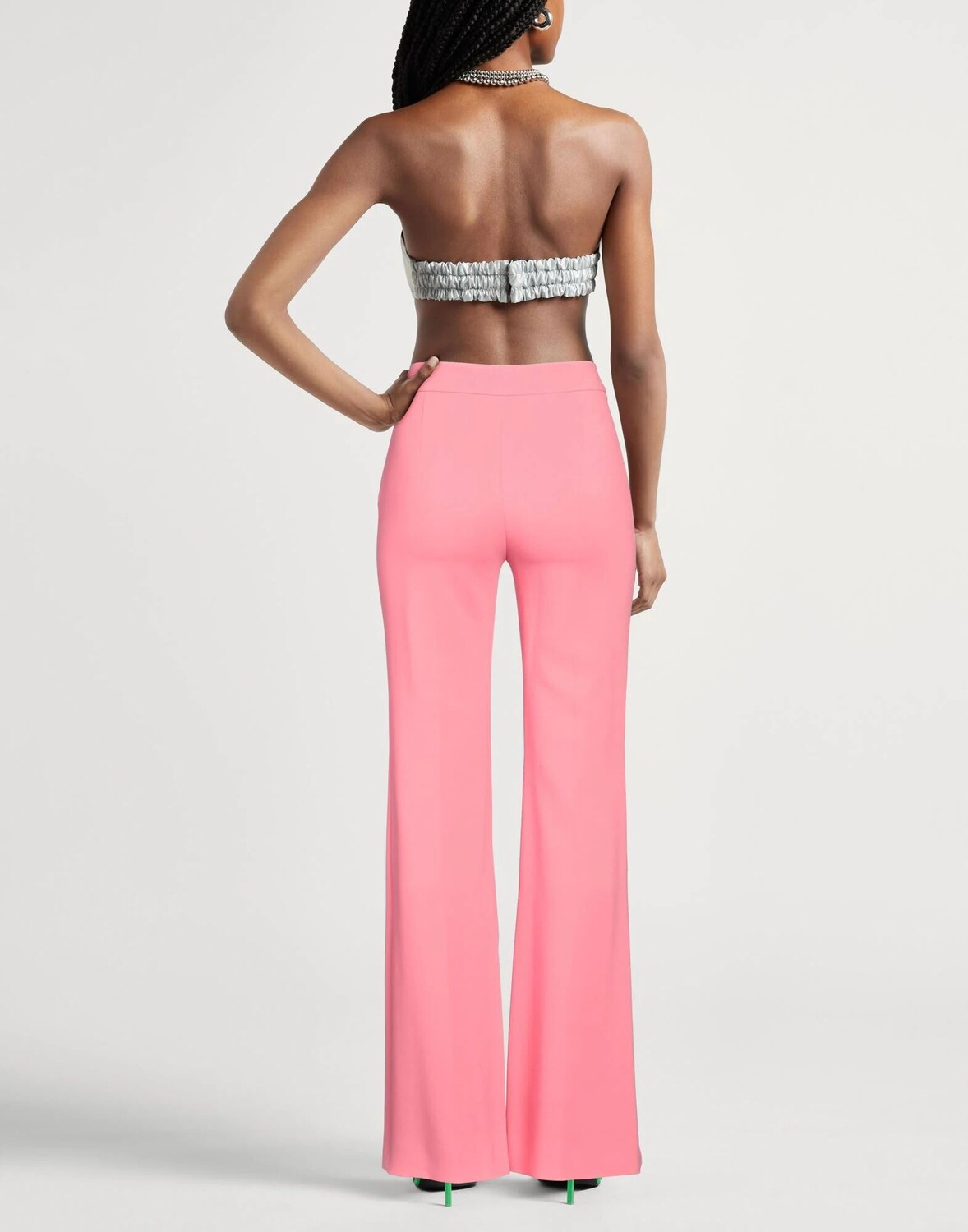 Брюки-клеш, креп, без аппликаций, одноцветное изделие, средняя посадка, стандартный крой, застежка на крючки, застежка-молния, без карманов, стрейч, химчистка, нельзя отбеливать, нельзя сушить в стиральной машине