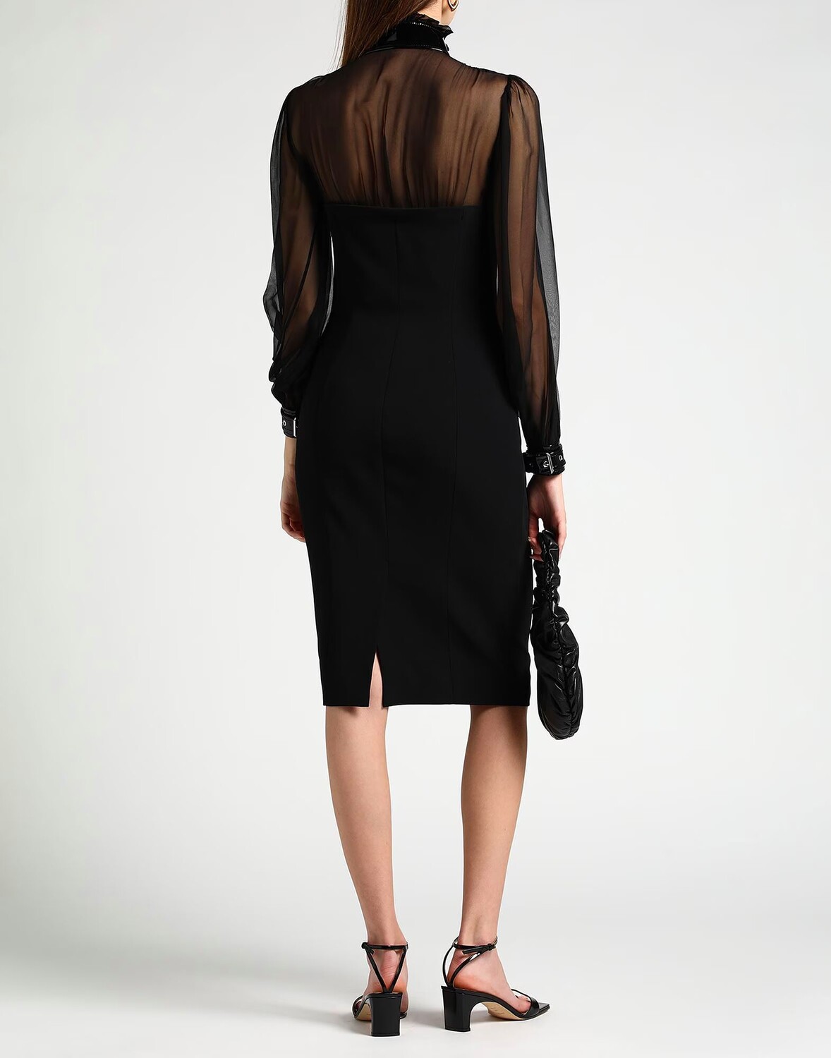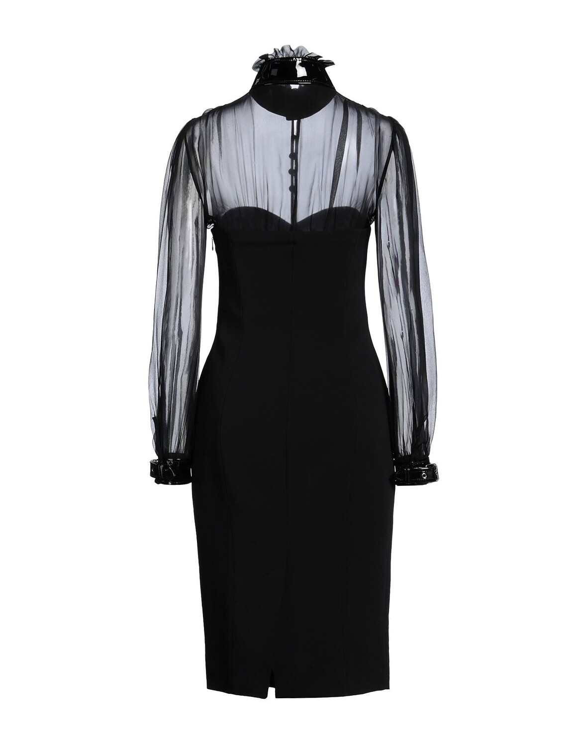 Тканое, шифон, патент-эффект, без аппликаций, одноцветное изделие, водолазка, длинные рукава, внутри на подкладке, застежка-молния, без карманов, стрейч, химчистка, нельзя отбеливать, нельзя сушить в стиральной машине, нельзя гладить, облегающее платье