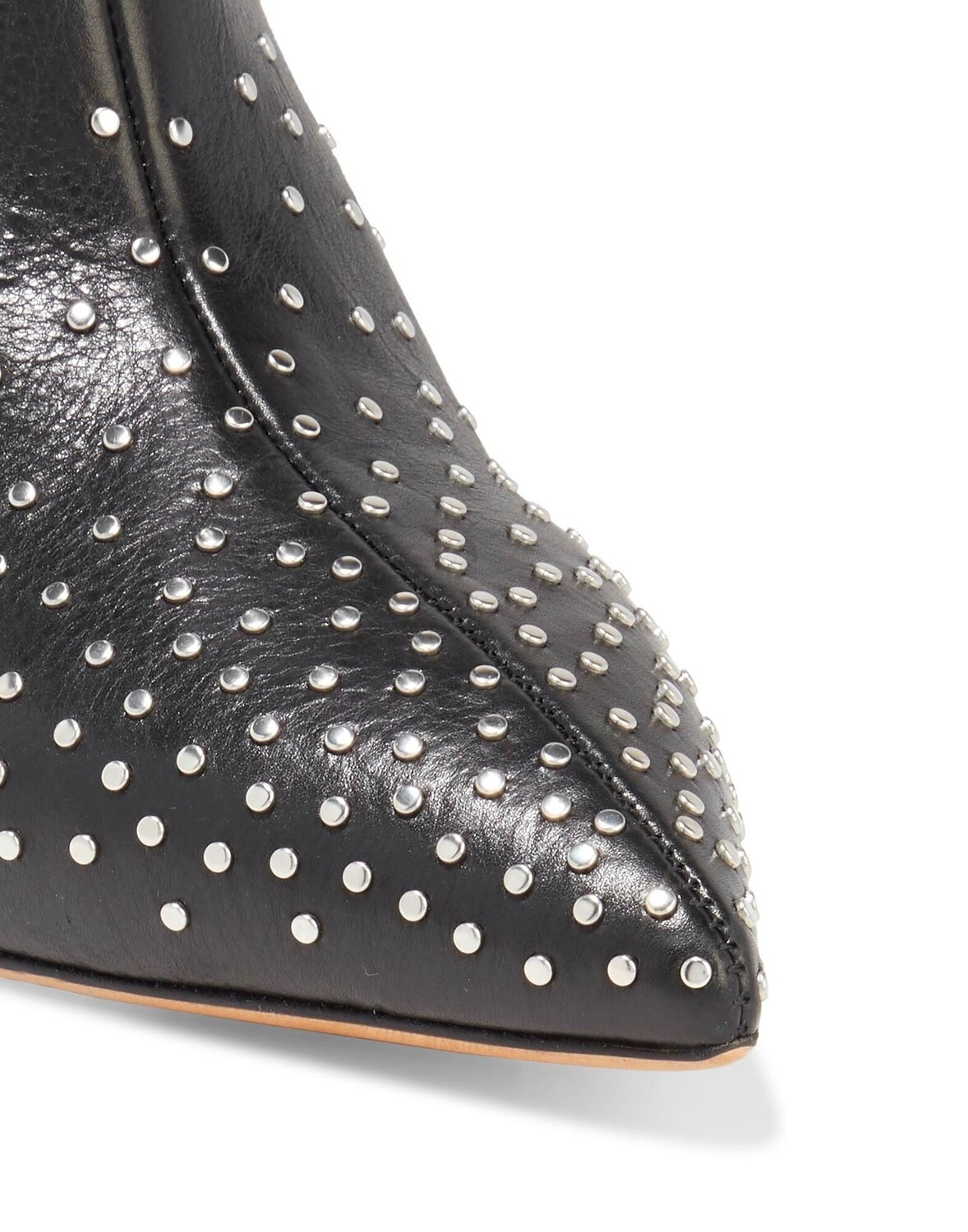 Кожа, металлические аппликации, одноцветное изделие с аппликациями, подкладка из кожи, узкий носок, конический каблук, обтянутый каблук, кожаная подошва, содержит нетекстильные части животного происхождения, ботинки