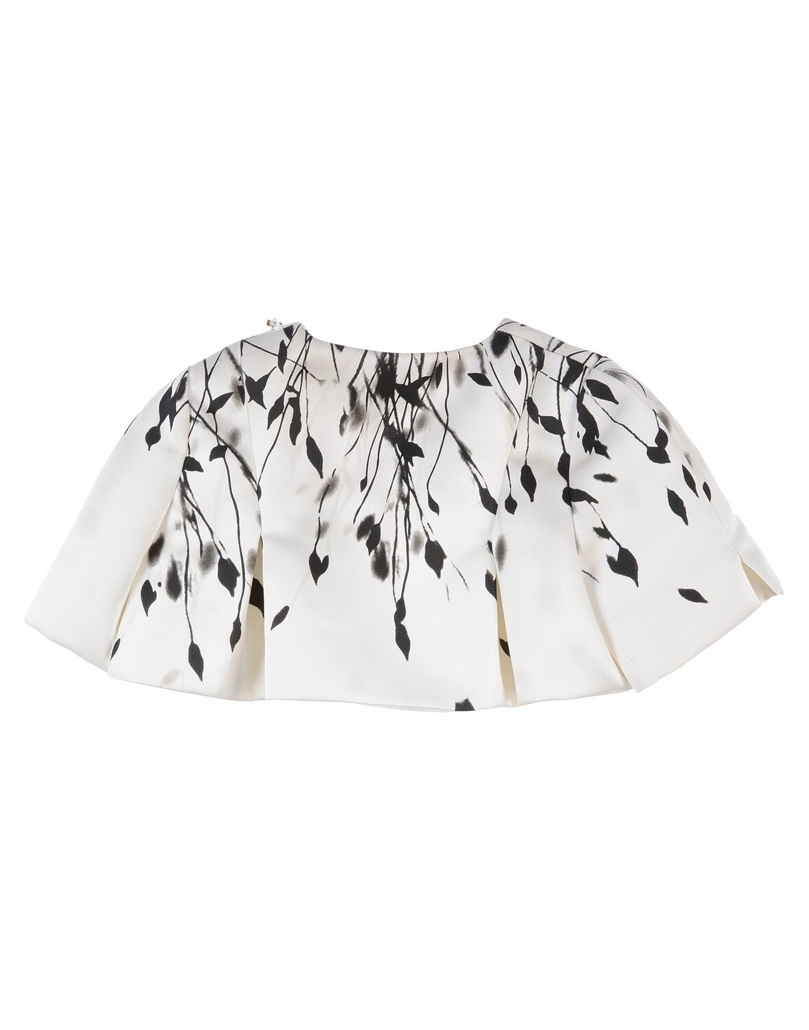 Сатин, бисер, логотип бренда, цветочный принт, двухцветный, круглый вырез, однобортный, короткие рукава, внутри на подкладке, застежка на крючки, без карманов, машинная стирка, нельзя отбеливать, нельзя сушить в стиральной машине