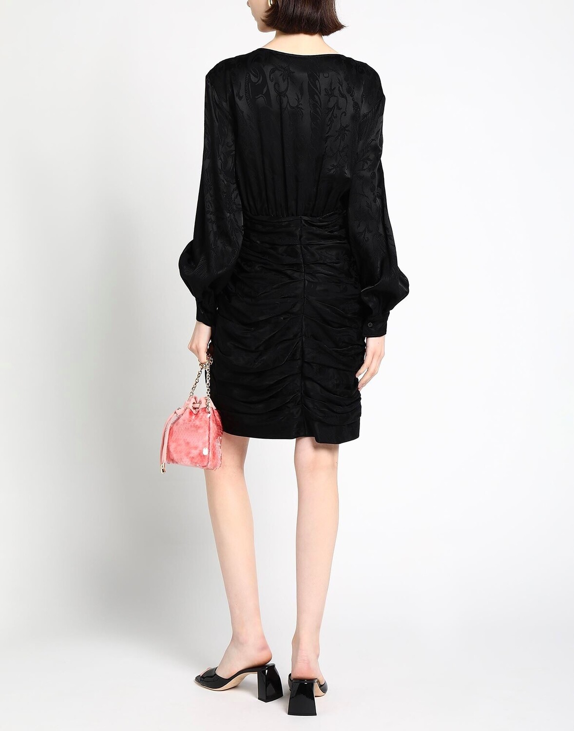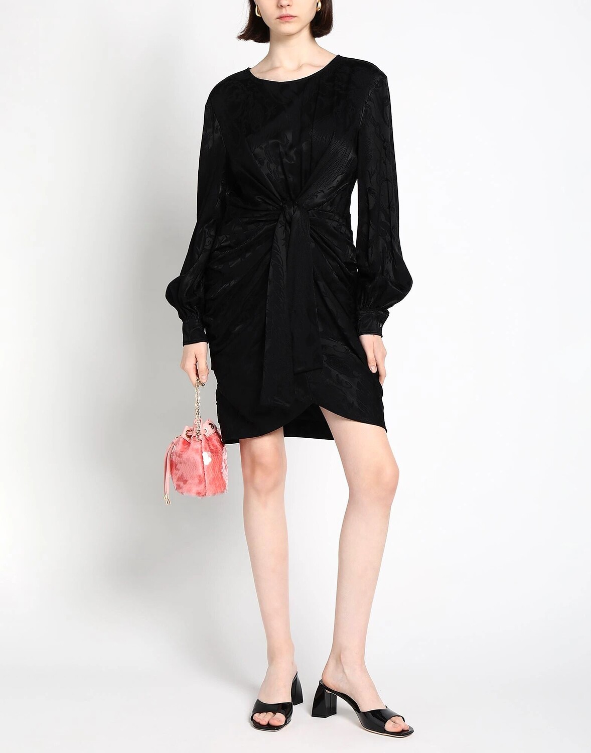 Облегающее платье, атлас, жаккард, бант, одноцветное изделие, круглый вырез, длинные рукава, без карманов, химчистка, нельзя отбеливать, нельзя сушить в стиральной машине