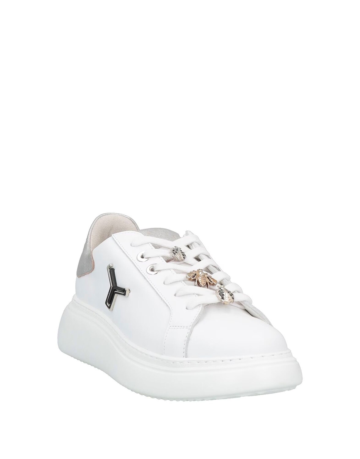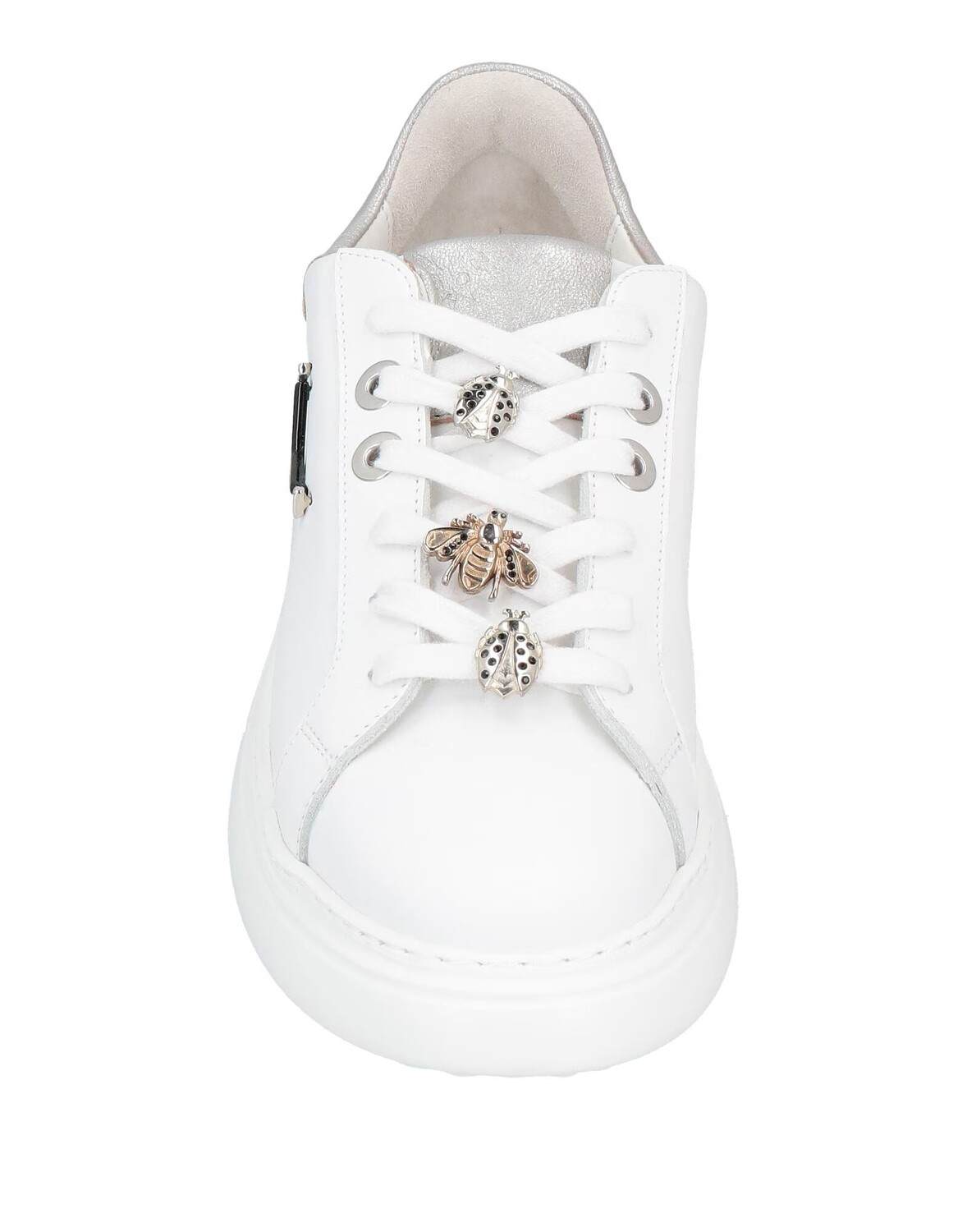Кожа, металлик, логотип бренда, металлические аппликации, одноцветное изделие с аппликациями, шнуровка, круглый носок, без каблука, резиновая подошва, содержит нетекстильные части животного происхождения, низкие кеды
