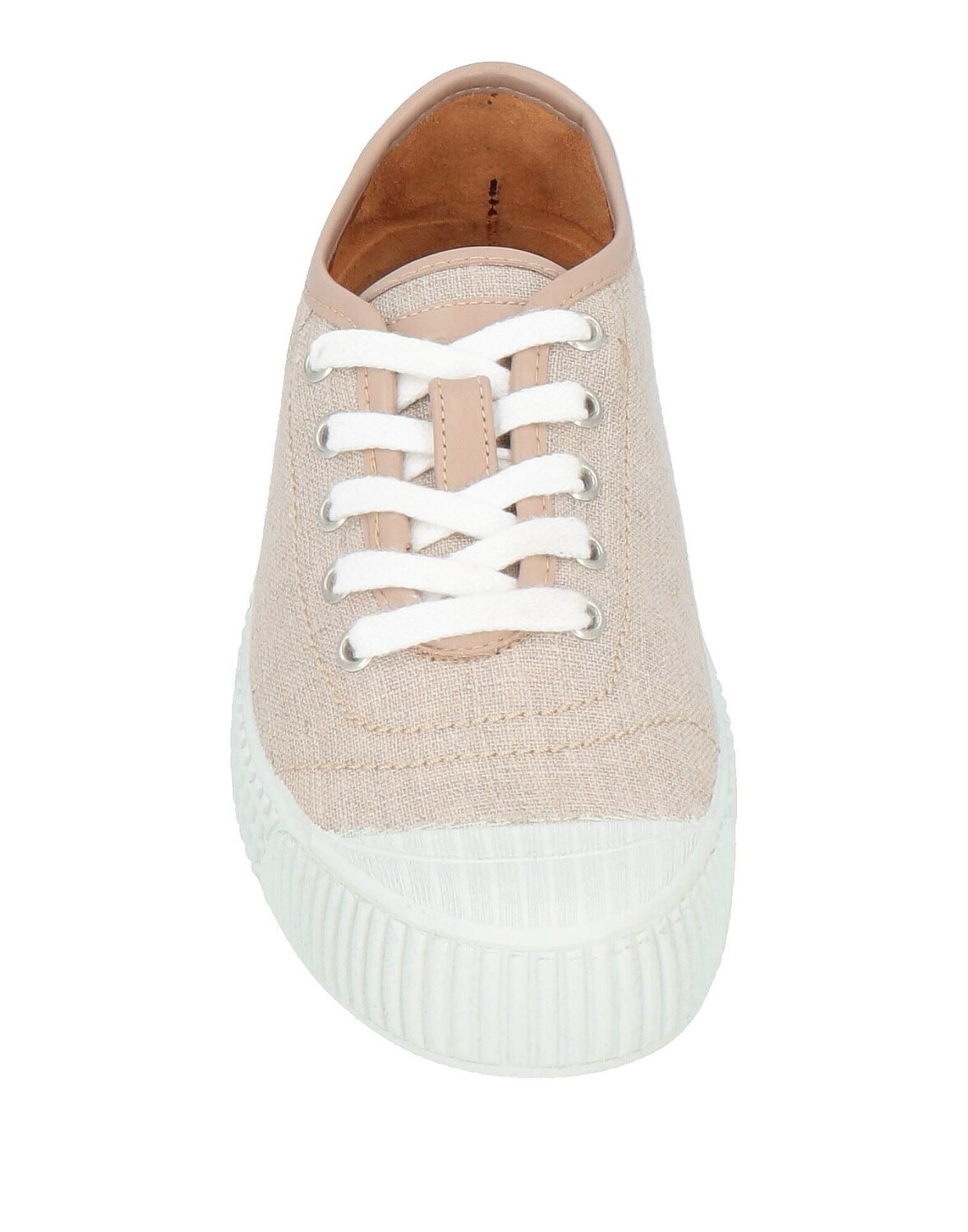 Полотняное переплетение, логотип бренда, одноцветное изделие, кожаная подкладка, шнуровка, скругленный носок, плоская подошва с резиновым тиснением, низкие кеды и кроссовки