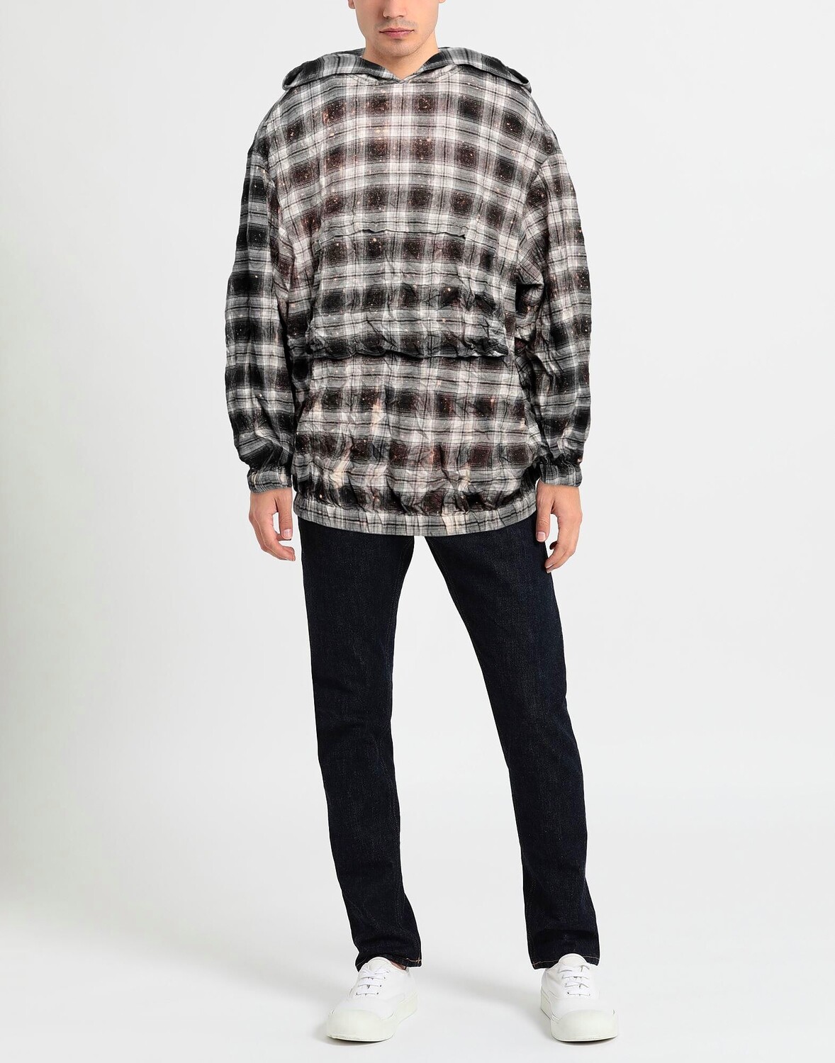 Тканый, плиссированный, узор «тартан», многоцветный, с капюшоном, длинные рукава, без карманов