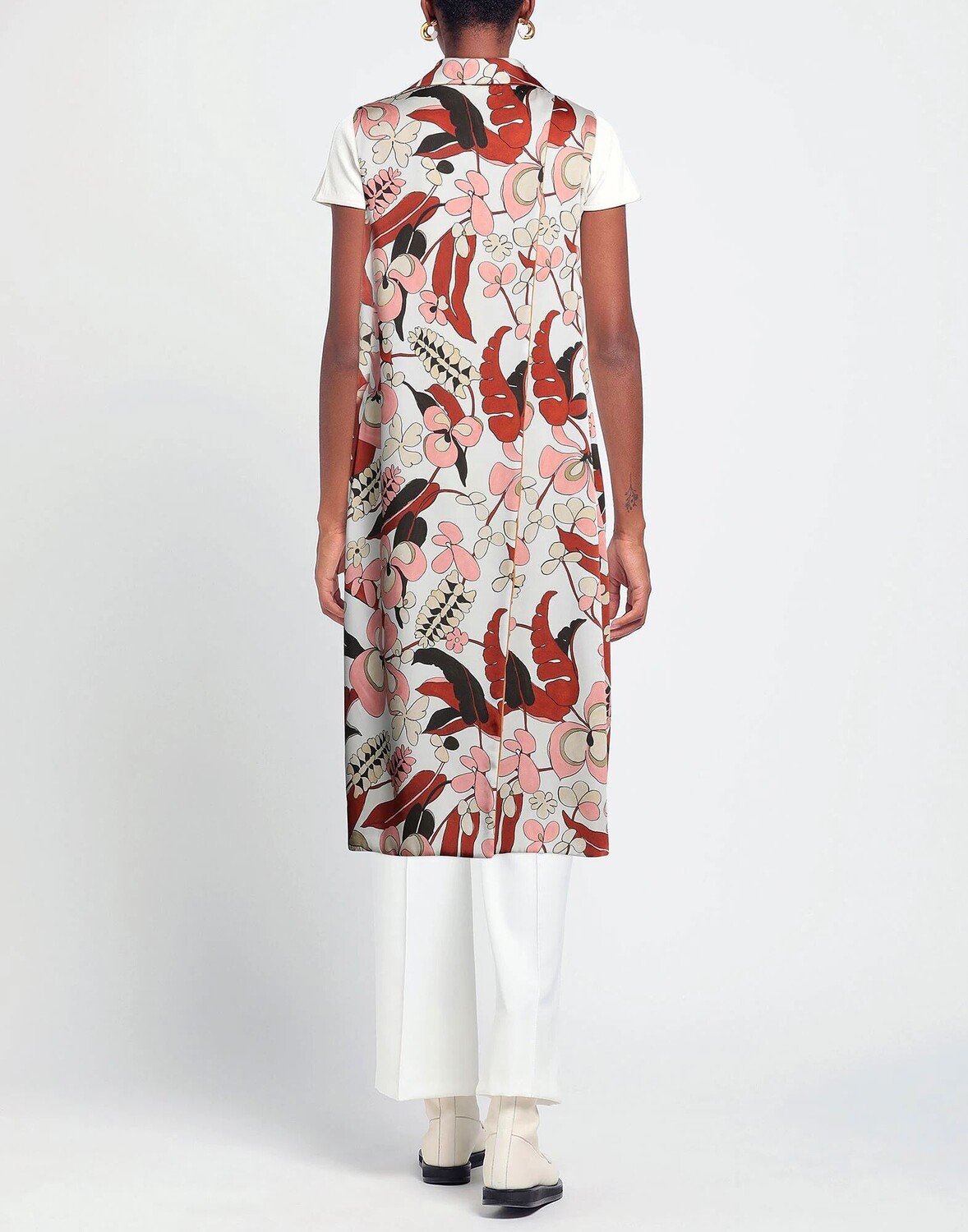 Атлас, без аппликаций, цветочный дизайн, воротник с лацканами, однобортный, без рукавов, на подкладке, 2 пуговицы, без карманов, разрез сзади, разрез сбоку по низу, пиджак однобортный
