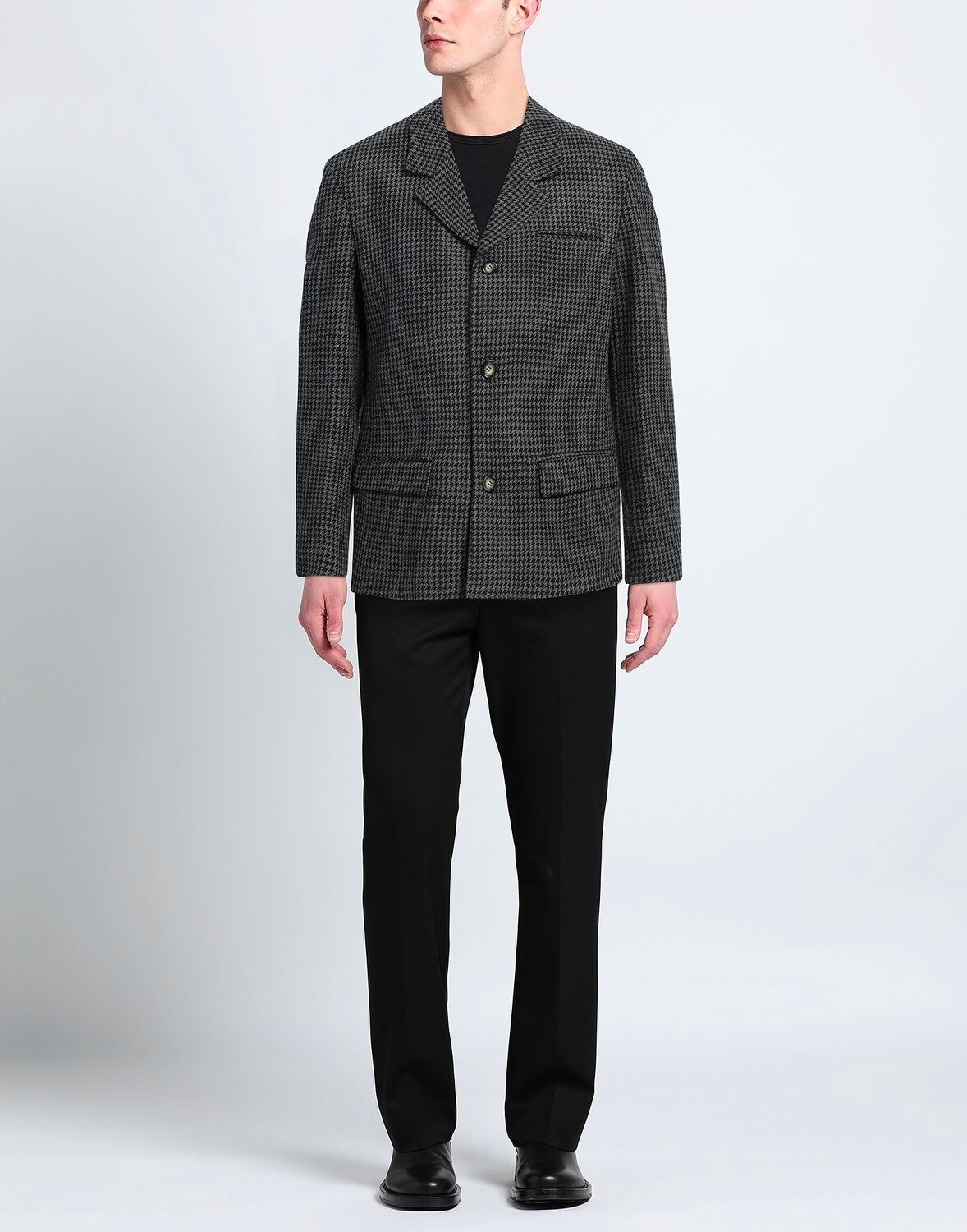 Фланель, без аппликаций, узор «гусиные лапки», воротник с лацканами, длинные рукава, полностью на подкладке, застежка на пуговицы, множество карманов, внутренние карманы, разрез сзади, машинная стирка или химчистка, не отбеливать, нельзя сушить в стиральной машине, однобортный пиджак