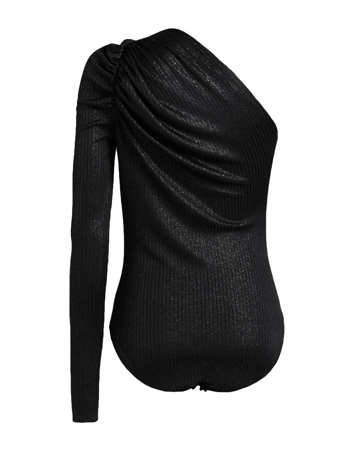 Трикотаж, ламе, легкая вязка, без аппликаций, одноцветное изделие, овальный вырез, на одно плечо, без карманов, промежность тела, стрейч