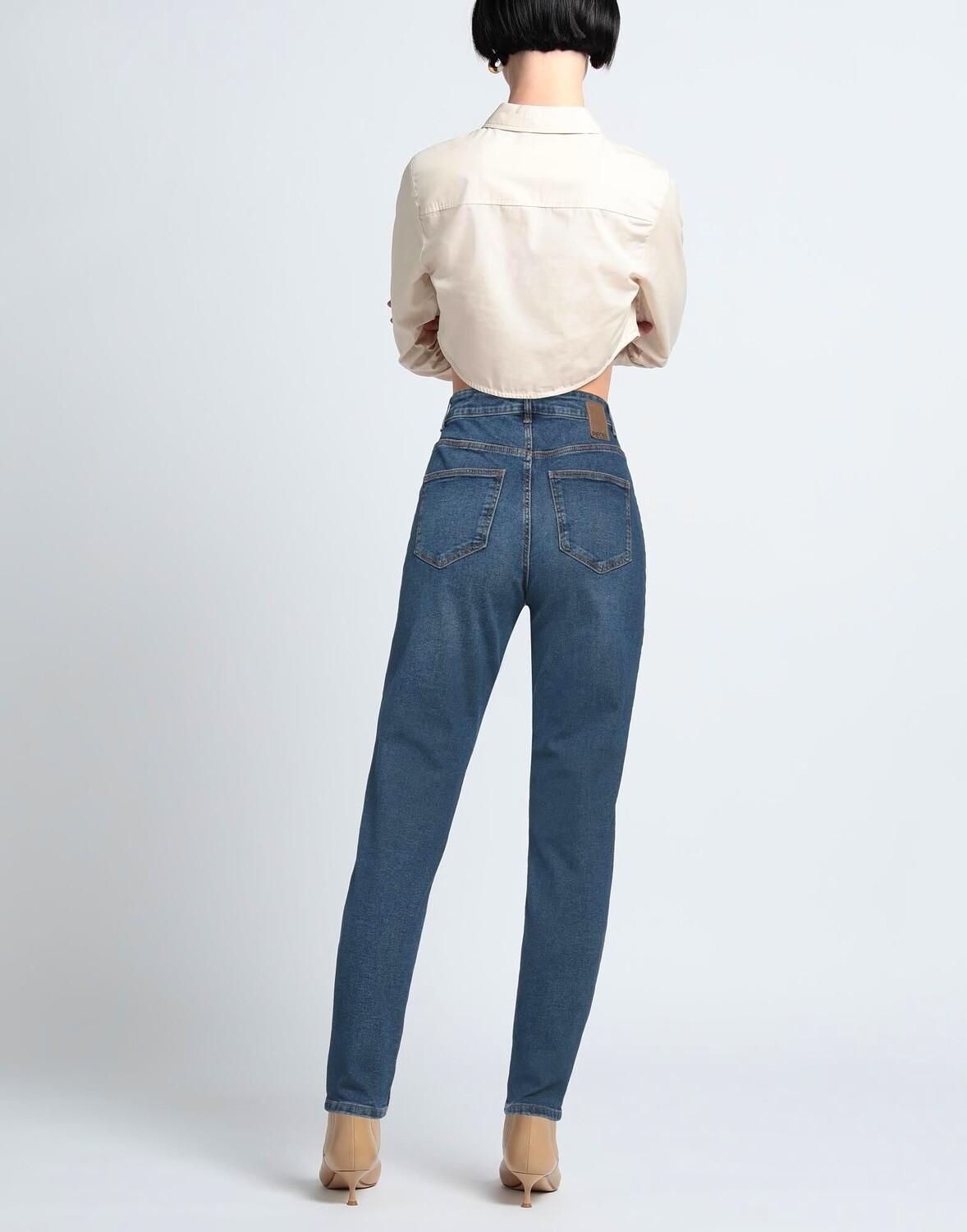 Джинсовая ткань, логотип бренда, одноцветное изделие, средняя степень стирки, завышенная талия, застежка-молния, множество карманов, зауженная модель