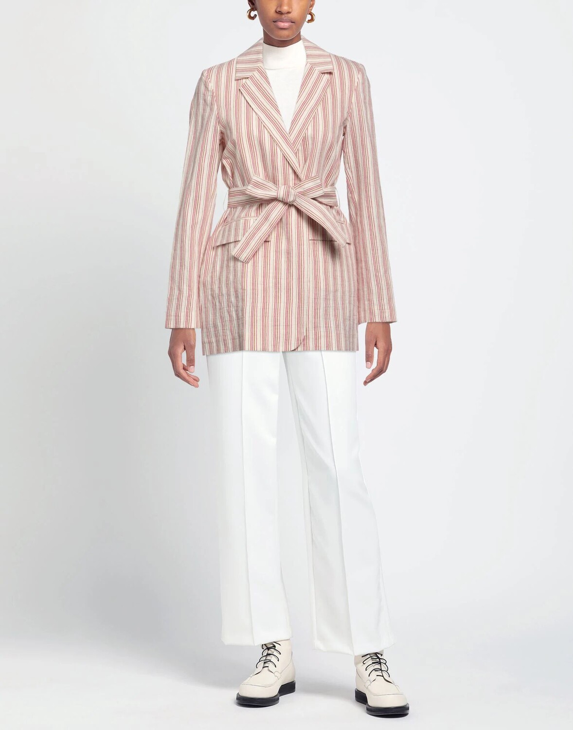 Тканый, пояс, в полоску, воротник с лацканами, однобортный, длинные рукава, множество карманов, однобортный пиджак