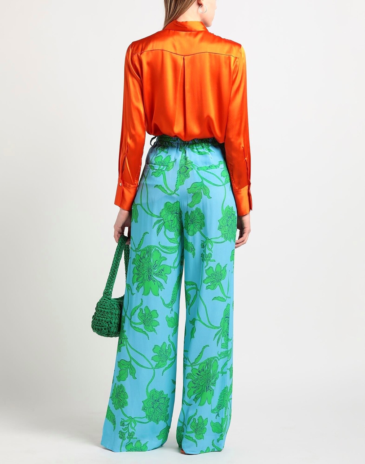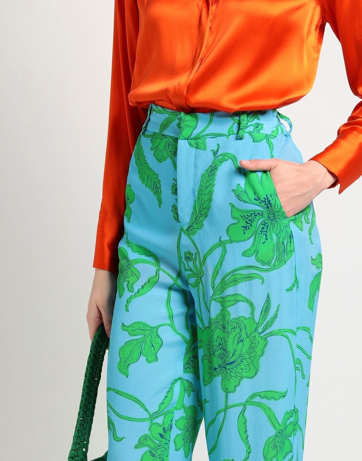 Креп, без аппликаций, цветочный принт, разноцветный, завышенная талия, расклешенный крой, классический крой, множество карманов, брюки