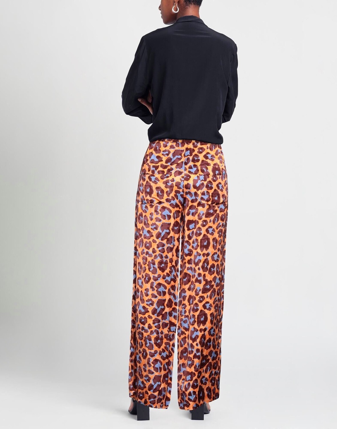 Сатин, без аппликаций, леопардовый принт, завышенная талия, прямые брючины, стандартный крой, множество карманов, брюки