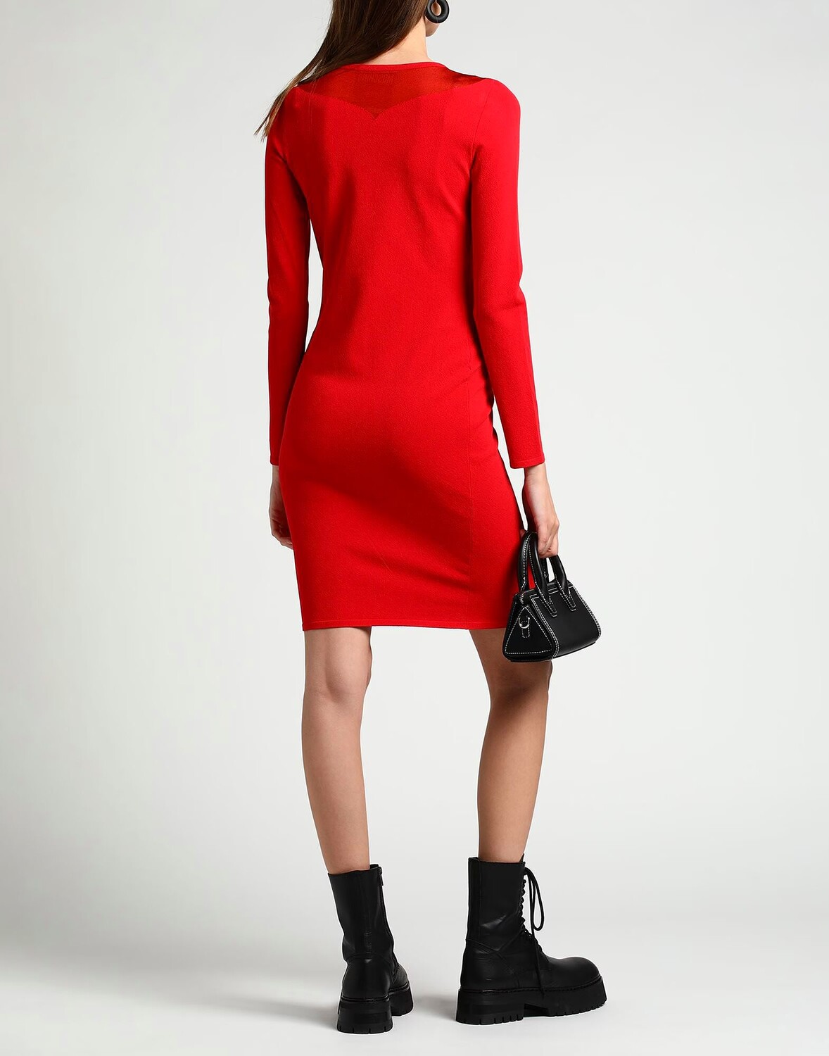 Трикотажное, легкий трикотаж, без аппликаций, двухцветное, круглый вырез, длинные рукава, без карманов, ручная стирка или химчистка, не отбеливать, нельзя сушить в стиральной машине, облегающее платье