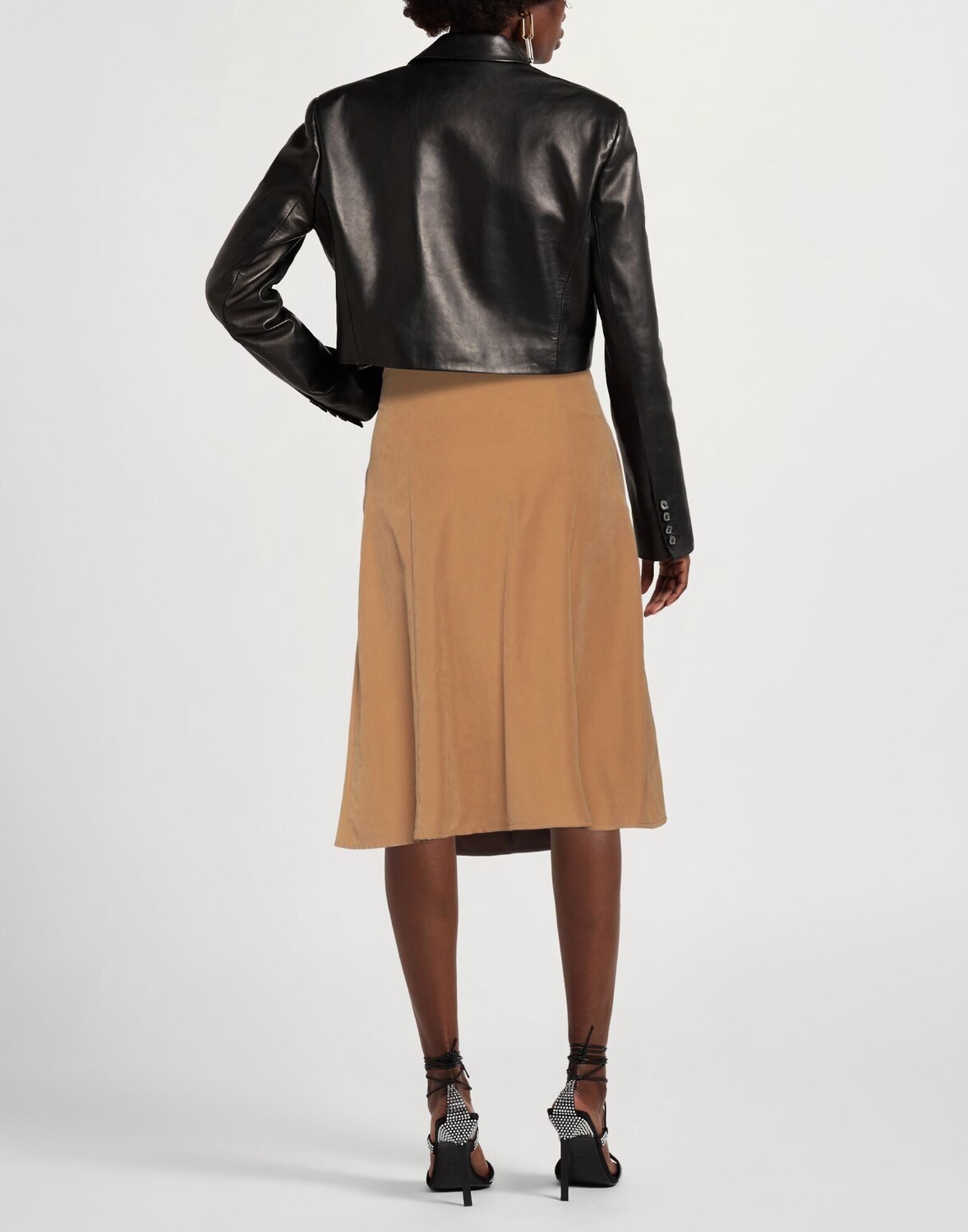 Расклешенная юбка, ткань с эффектом замши, одноцветное изделие, без аппликаций, застежка на пуговицы, множество карманов, не стирать, не отбеливать, не сушить в стиральной машине