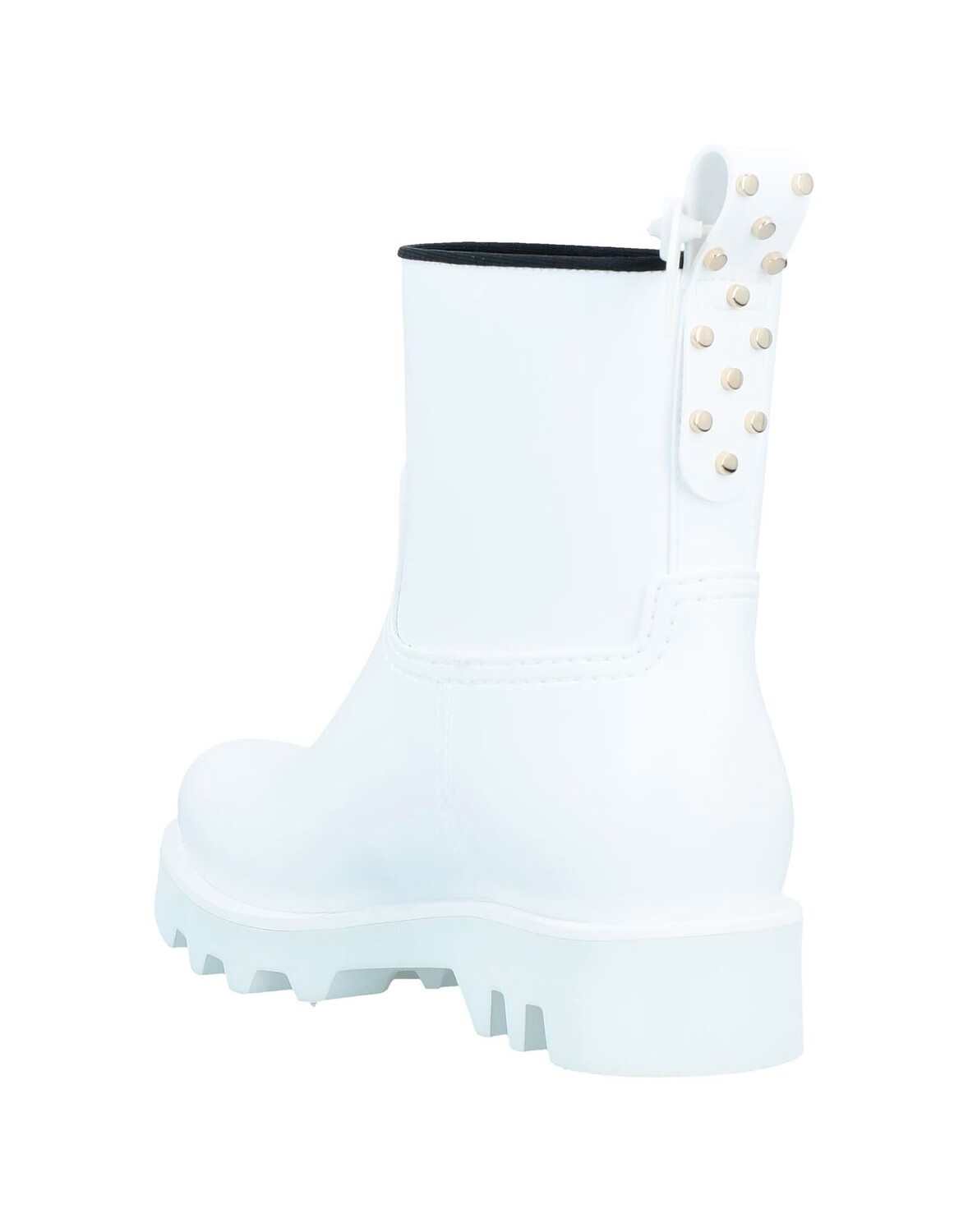Резиновые ботильоны, логотип бренда, заклепки, одноцветное изделие с аппликациями, внутренняя часть из ткани, круглый носок, квадратный каблук, резиновый каблук, подошва с выступами