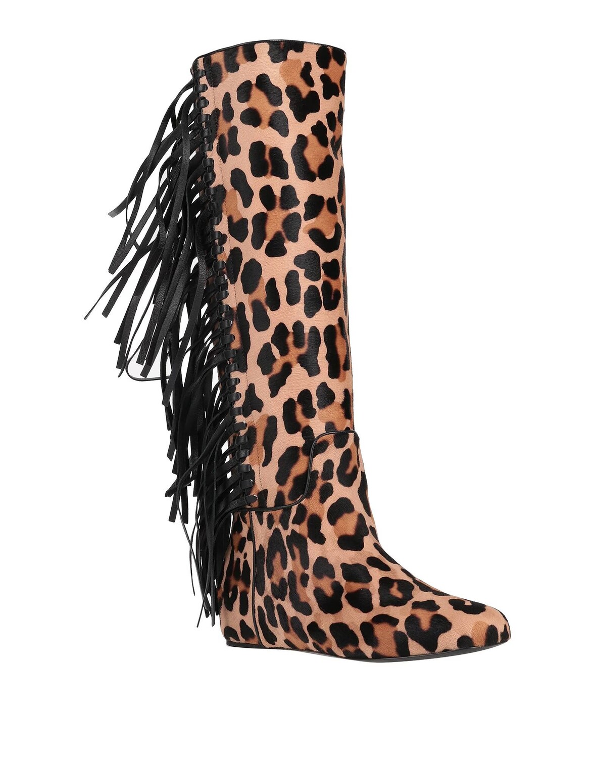 Телячий волос, бахрома, леопардовый принт, носок круглый, плоский, содержит нетекстильные части животного происхождения, ботинки с бахромой