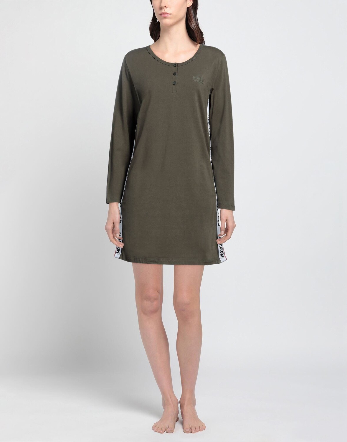 Трикотаж, логотип бренда, одноцветное изделие с аппликациями, длинные рукава, ночная рубашка