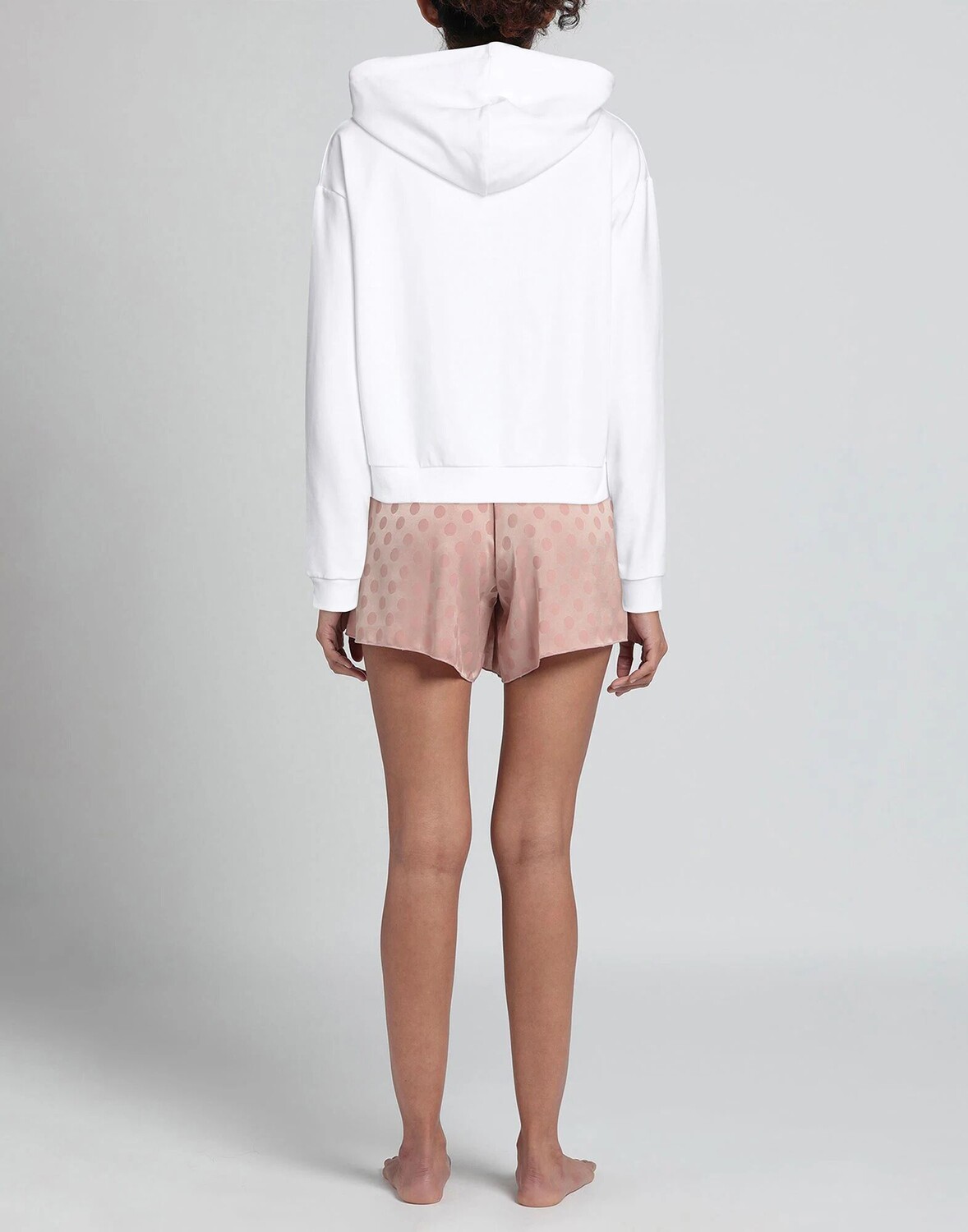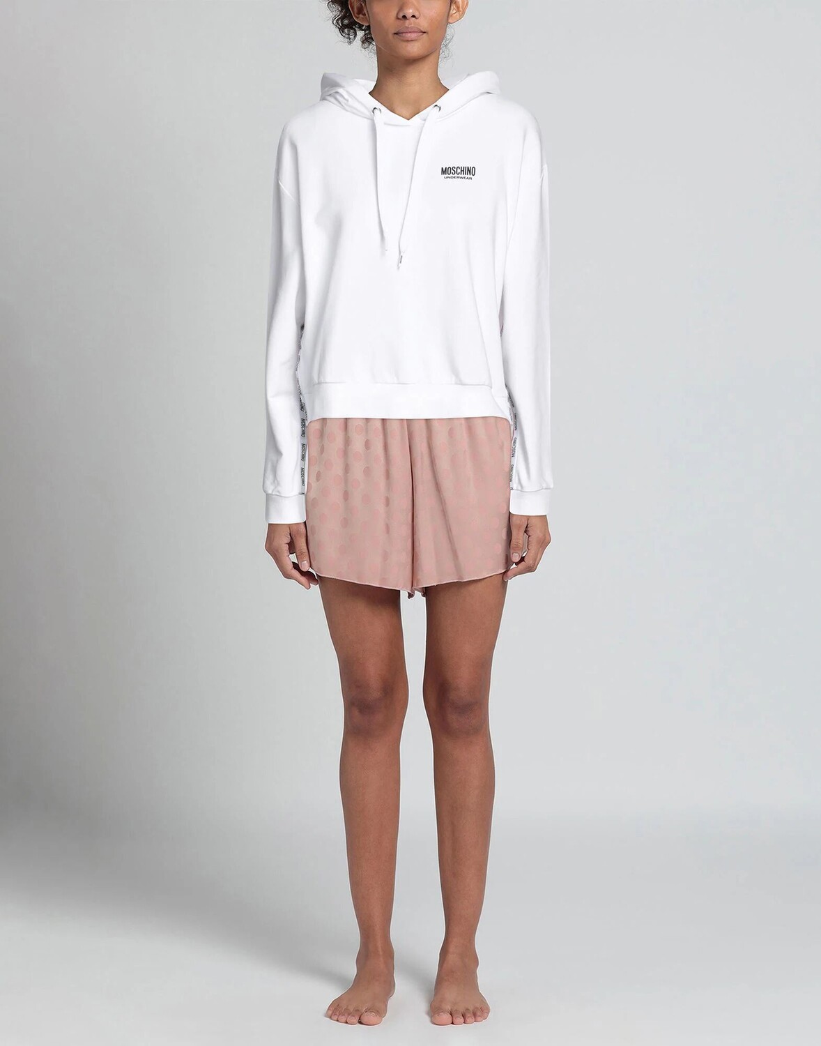 Толстовка флис, полосы по боковым швам, логотип бренда, однотонный цвет с аппликациями, воротник с капюшоном, длинные рукава, подкладка из французского махрового материала, без карманов, стрейч, пижамный верх