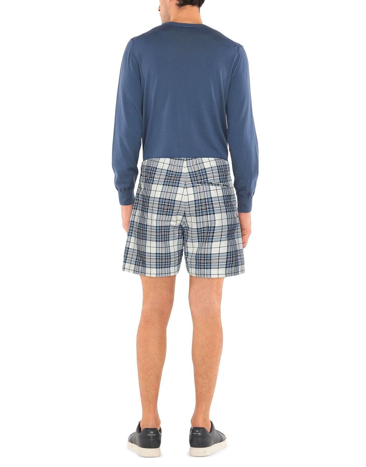 Саржа, логотип бренда, узор «тартан», завышенная талия, резинка на талии, застежка на шнурке, множество карманов, повседневные шорты