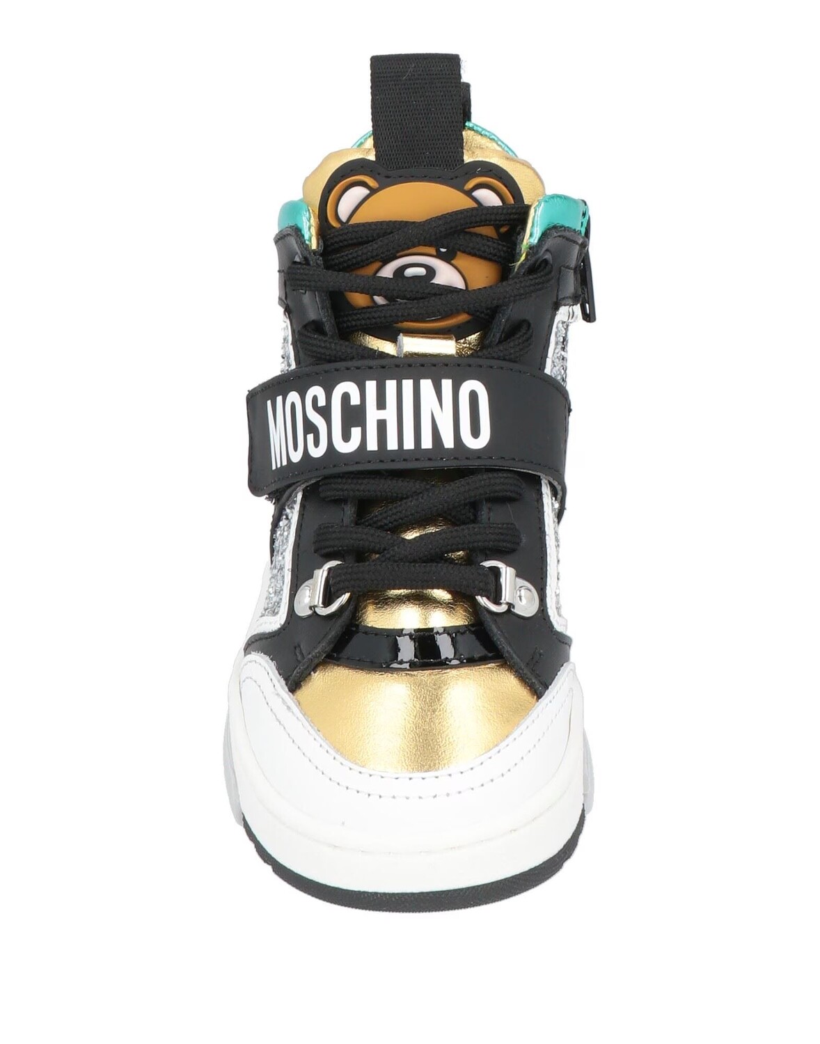 Кожа, эффект ламинирования, логотип бренда, блестки, разноцветный узор, кожаная подкладка, застежка-молния, застежка-липучка, скругленный носок, без каблука, резиновая подошва с тиснением, содержит нетекстильные части животного происхождения, модель на липучке