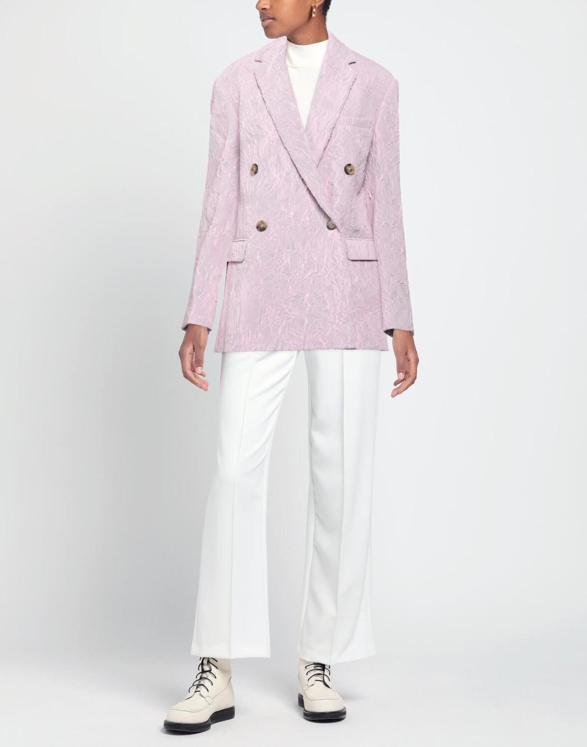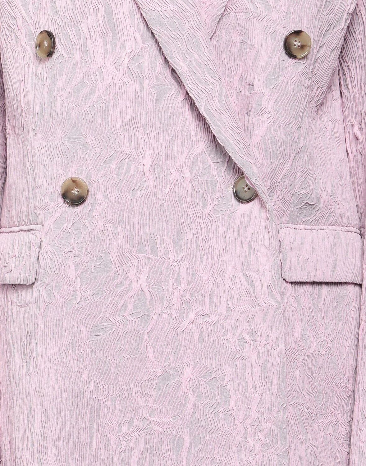 Полотняное переплетение, эффект мятости, без аппликаций, одноцветное изделие, воротник с лацканами, двубортный, длинные рукава, манжеты на пуговицах, внутри на подкладке, пуговицы, множество карманов, двойные шлицы сзади, двубортный пиджак