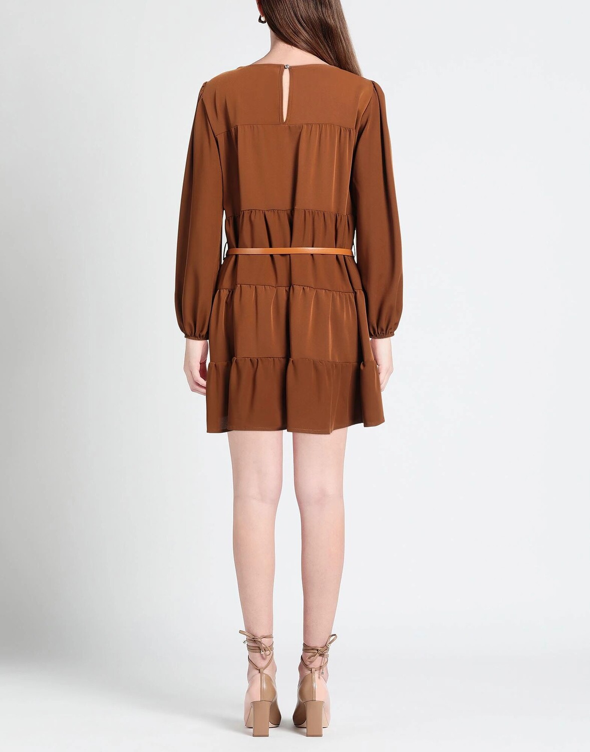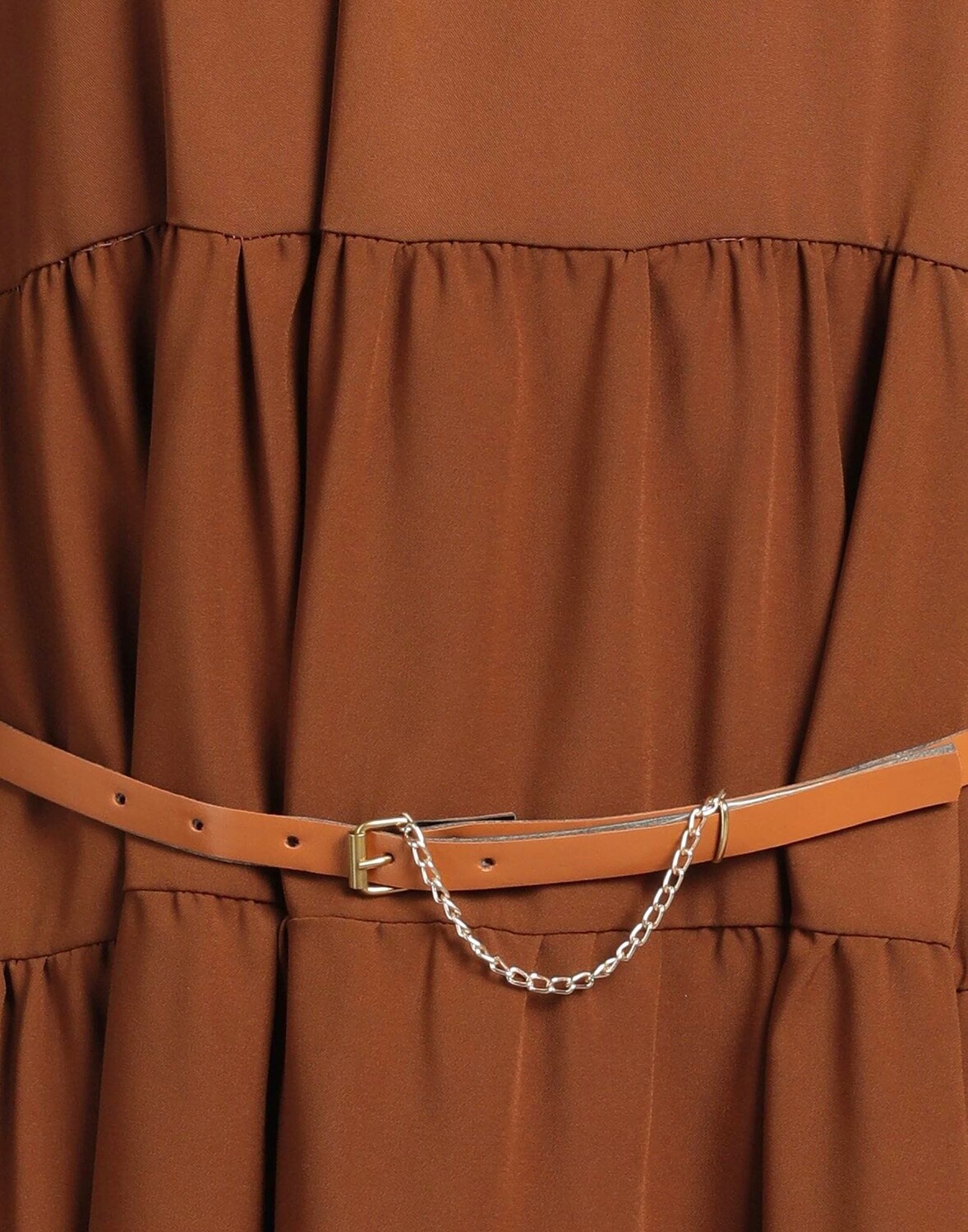 Саржа, Одноцветное изделие, Оборки, Длинные рукава, Ремень, Круглый вырез