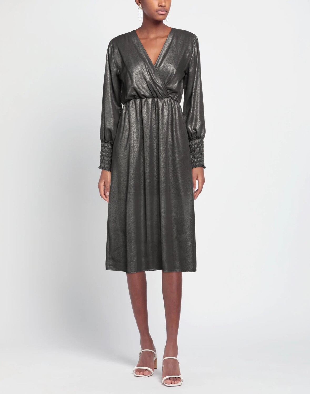Креп, ламе, без аппликаций, одноцветное изделие, v-образный вырез, длинные рукава, манжеты на резинке, внутренняя часть на частичной подкладке, без карманов, фасон трапеция