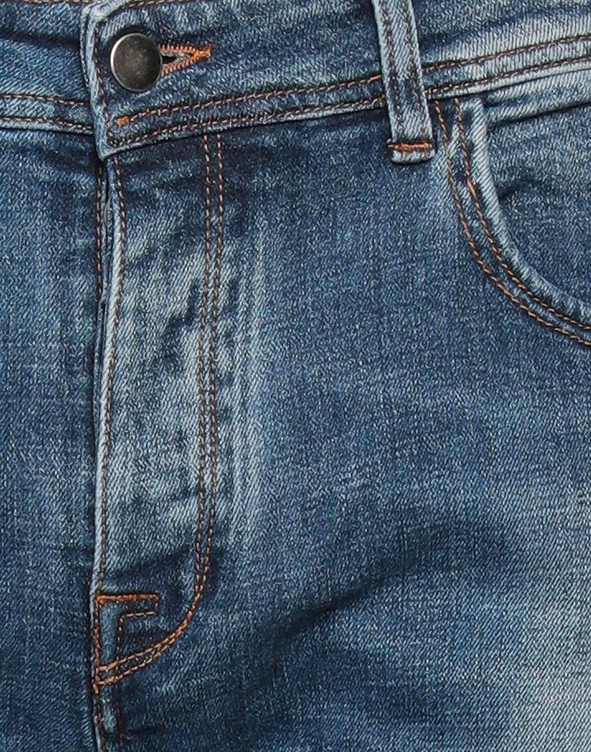 Деним, выцветший, логотип бренда, одноцветное изделие, средняя стирка, средняя посадка, потайные пуговицы, пять карманов, стрейч, модель прямого кроя
