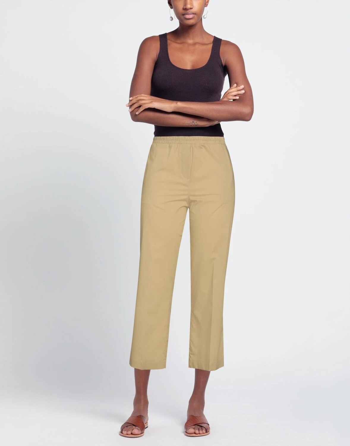 Брюки прямого кроя, поплин, без аппликаций, одноцветное изделие, завышенная талия, резинка на талии, классический крой, множество карманов, химчистка, не отбеливать, нельзя сушить в стиральной машине, укороченные
