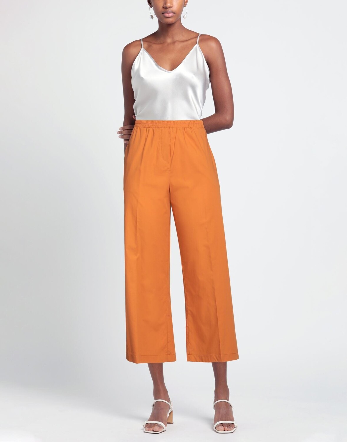 Брюки прямого кроя, поплин, без аппликаций, одноцветное изделие, завышенная талия, резинка на талии, классический крой, множество карманов, химчистка, не отбеливать, нельзя сушить в стиральной машине, укороченные