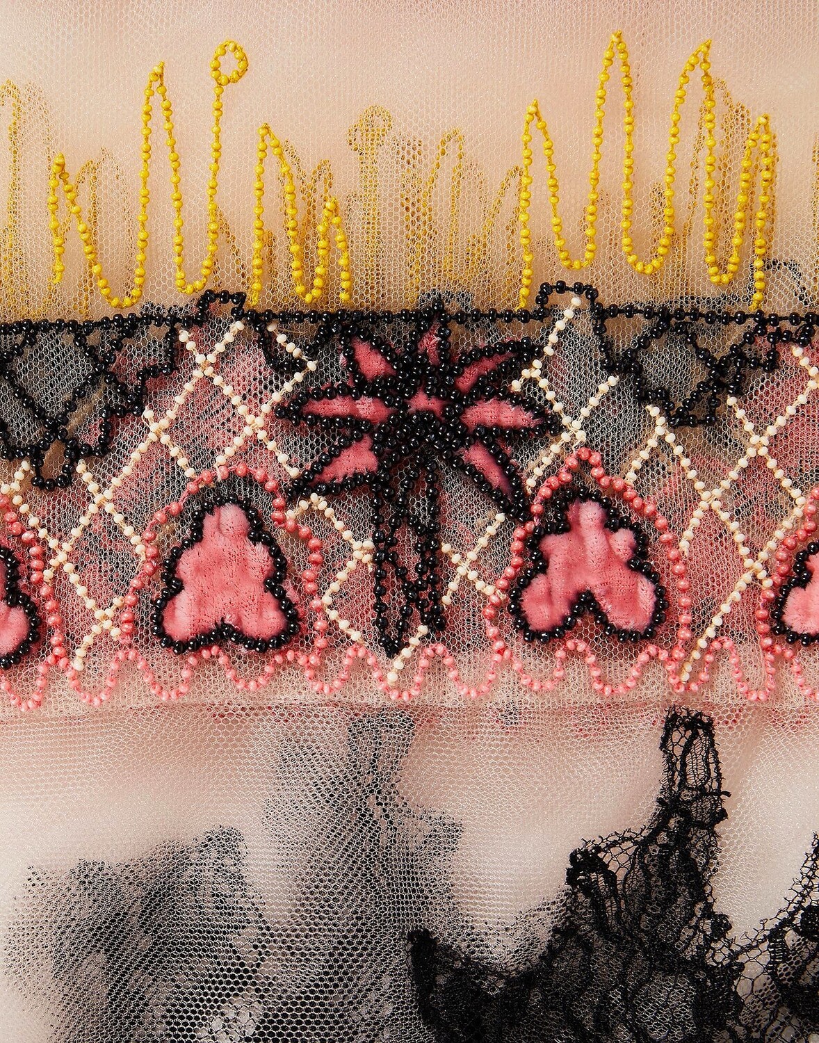 Тюль, кружево, бисер, стразы, разноцветный узор