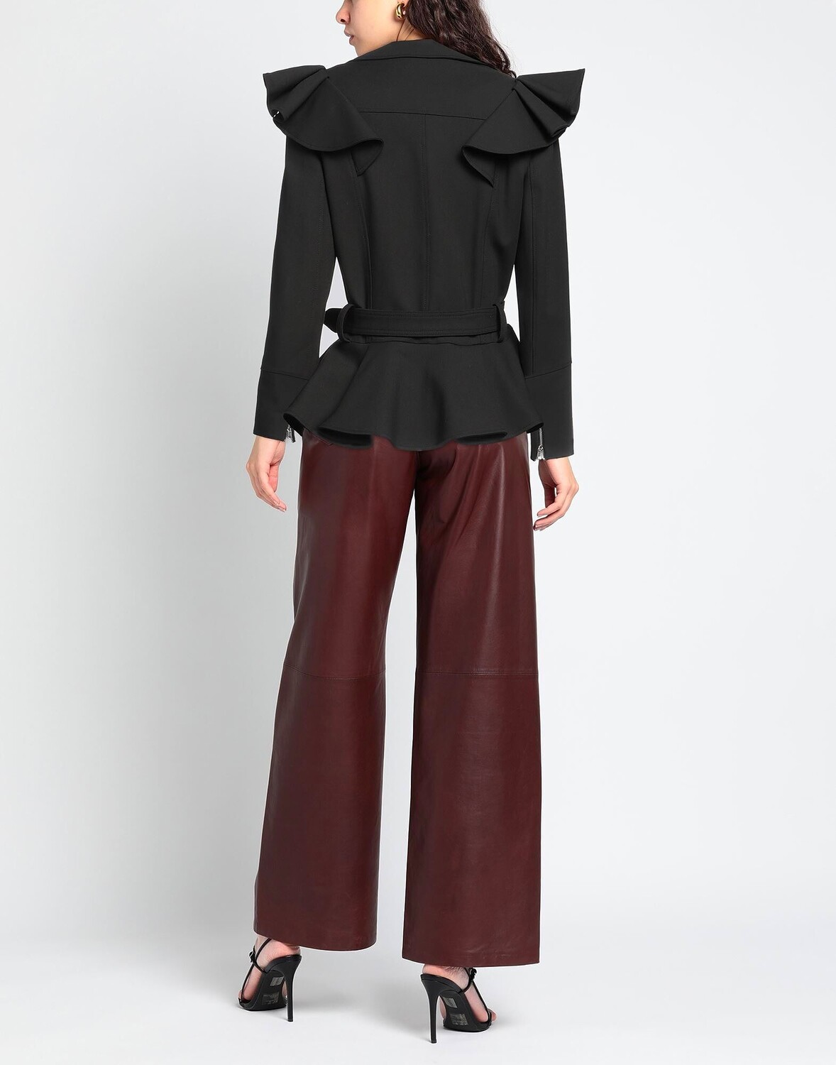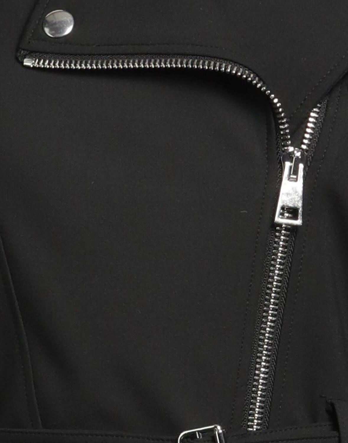 Полотняное переплетение, оборки, пояс, одноцветное изделие, воротник с лацканами, однобортное, длинные рукава, манжеты на молнии, внутри на подкладке, застежка-молния, петли для ремня, без карманов, стрейч, байкерский стиль