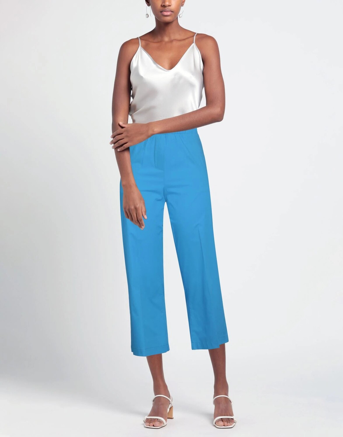 Брюки прямого кроя, поплин, без аппликаций, одноцветное изделие, завышенная талия, резинка на талии, классический крой, множество карманов, химчистка, не отбеливать, нельзя сушить в стиральной машине, укороченные