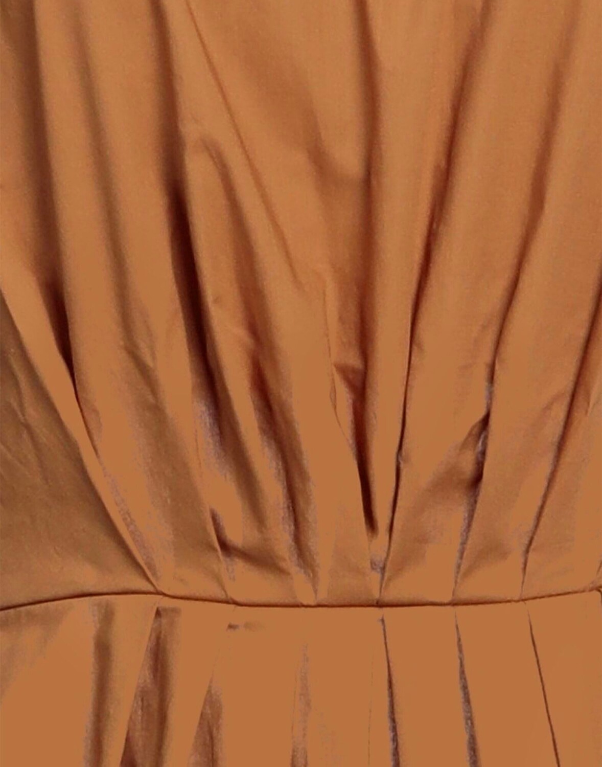 Полотняное переплетение, складки, одноцветное изделие, круглый воротник, без рукавов, без подкладки, 1 пуговица, застежка-молния, без карманов, платье