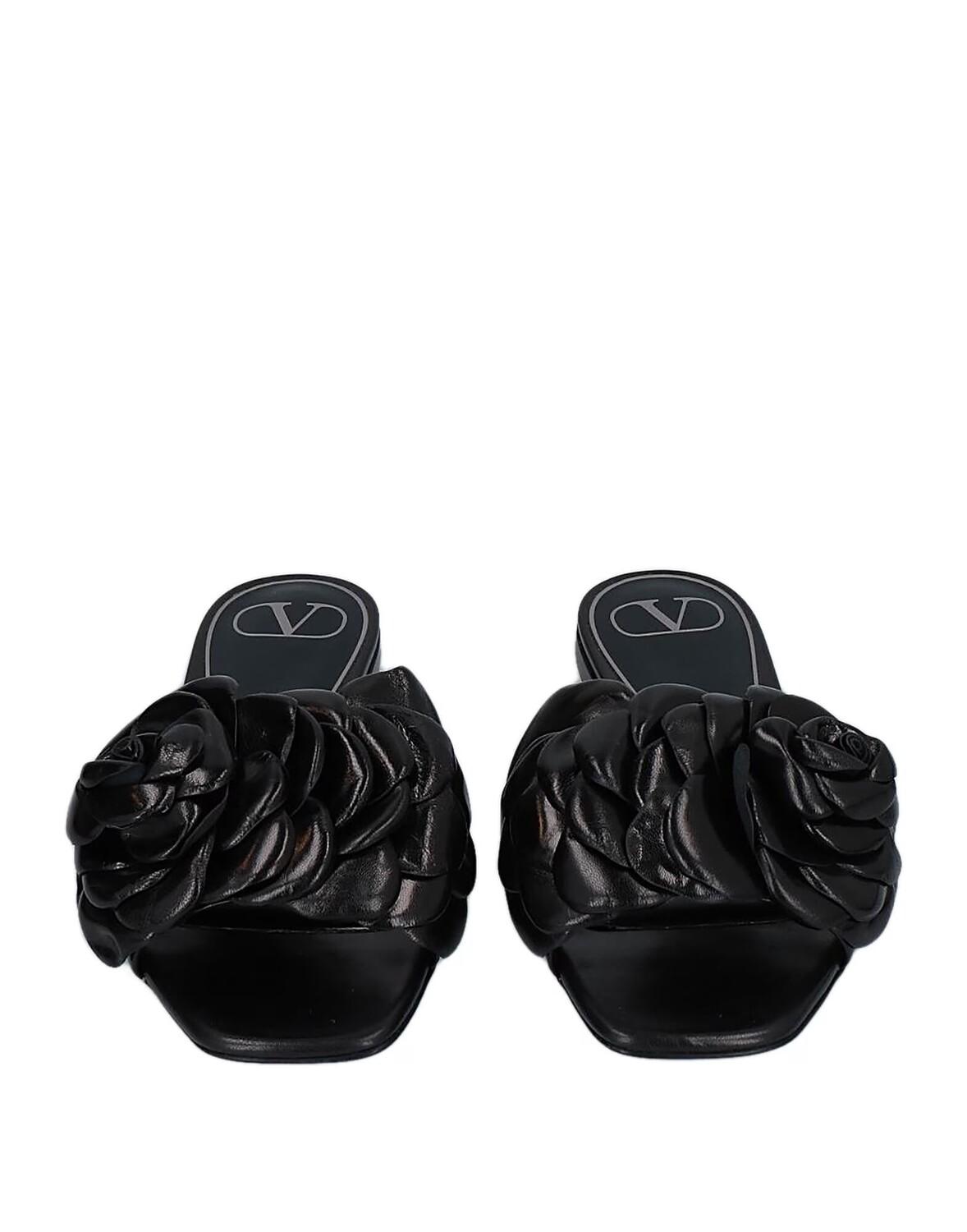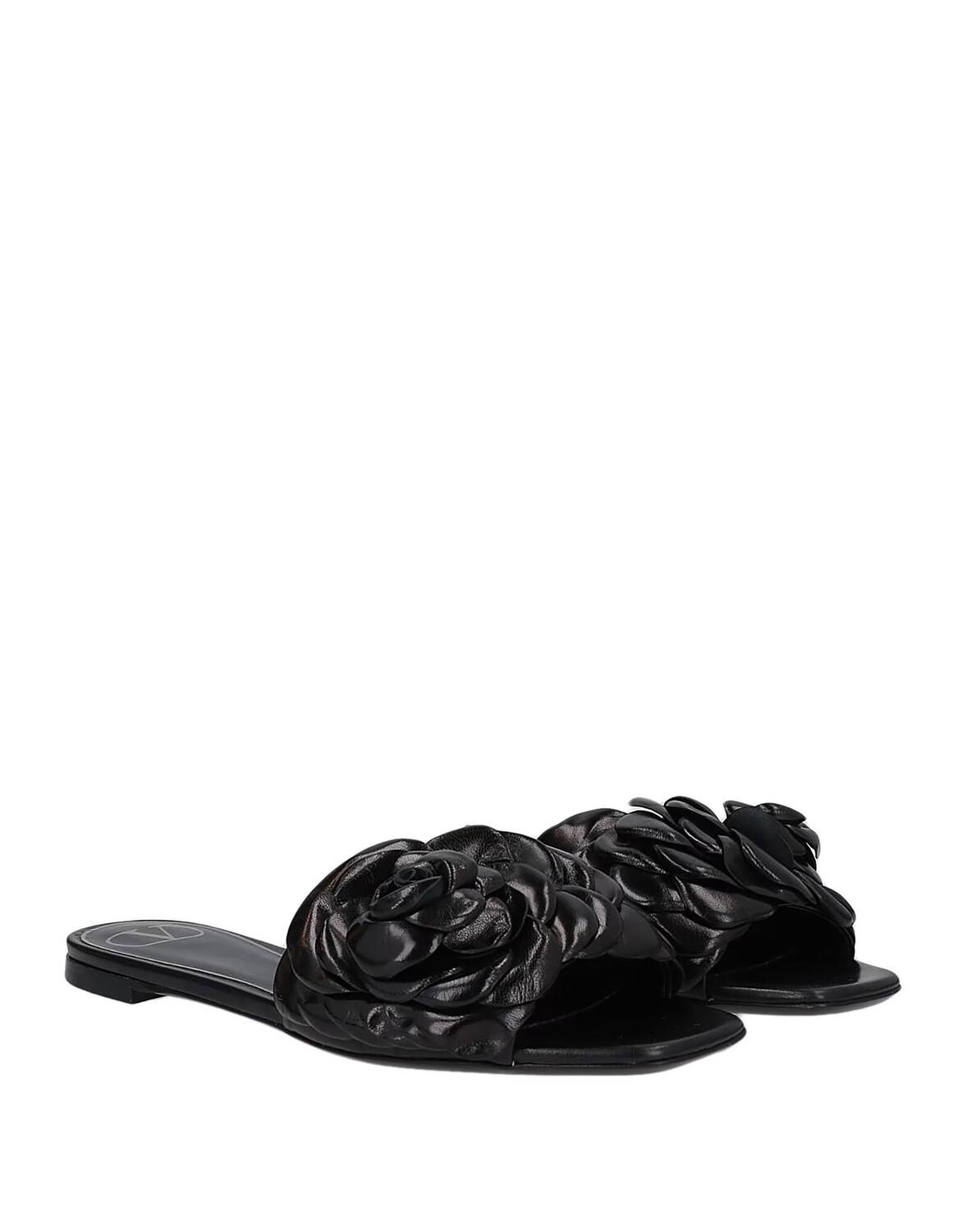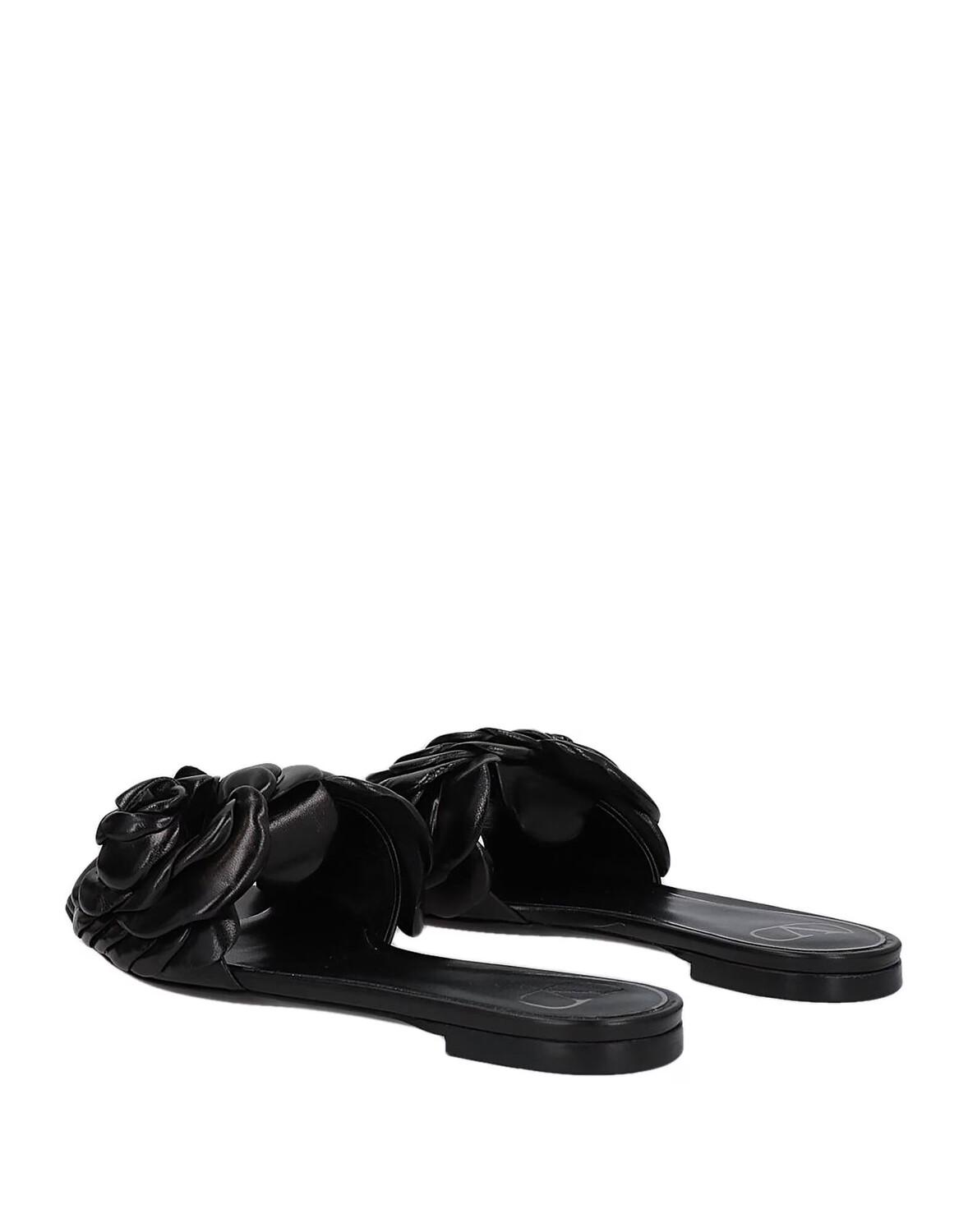 Кожа, цветочные аппликации, одноцветное изделие, подкладка из кожи, скругленный носок, без каблука, кожаная подошва, содержит нетекстильные части животного происхождения, шлепанцы