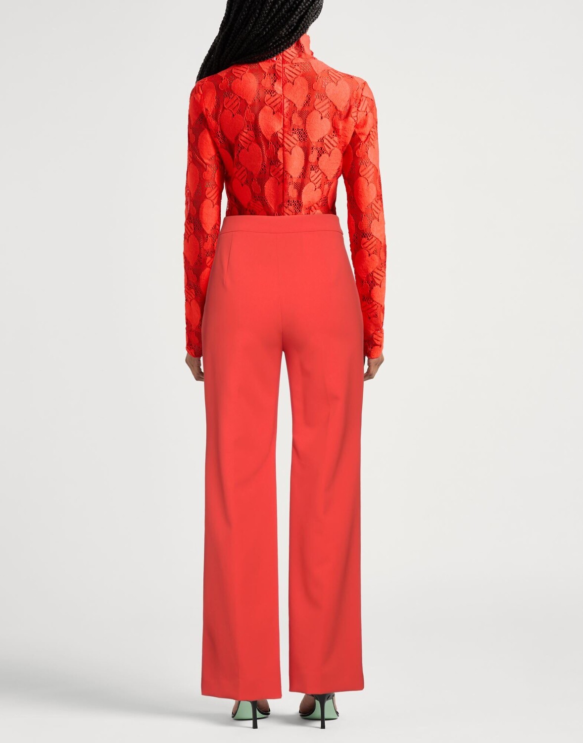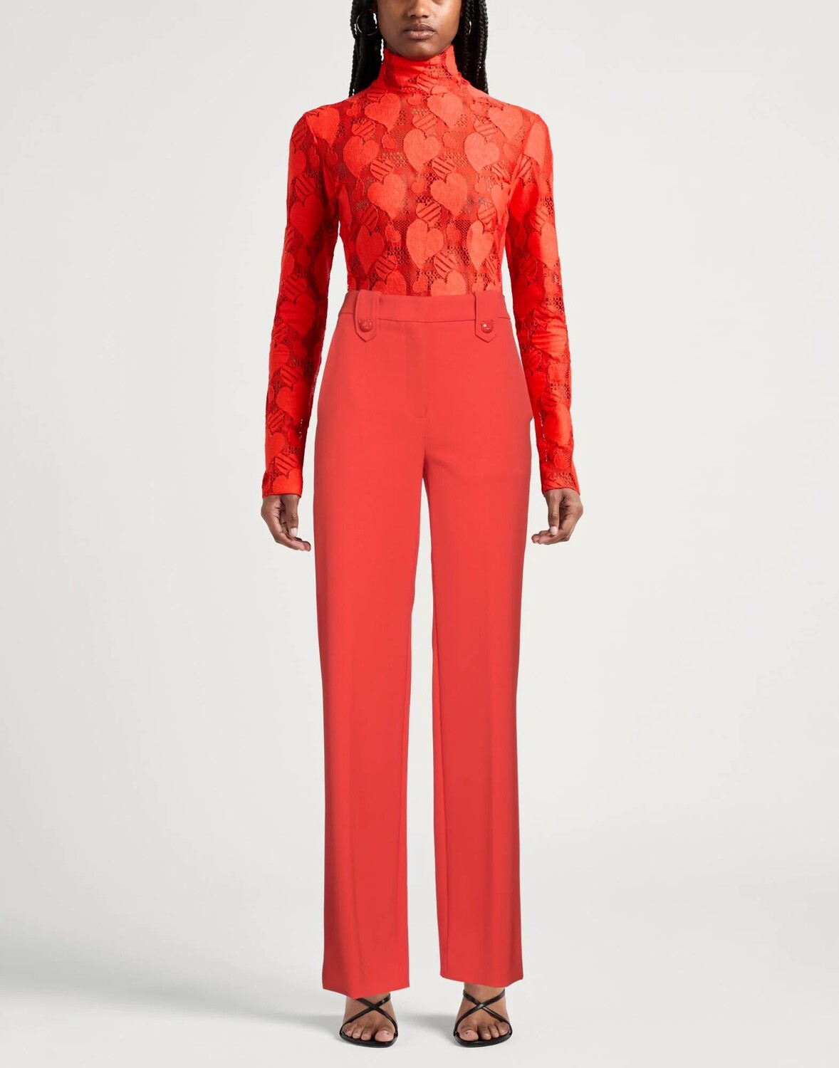 Креп, логотип бренда, одноцветное изделие с аппликациями, завышенная талия, широкие брючины, классический крой, множество карманов, стрейч, брюки чинос
