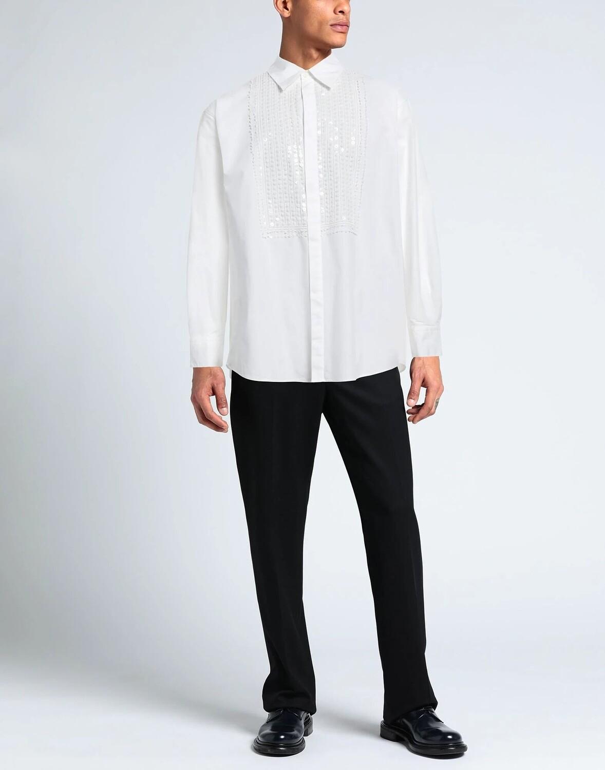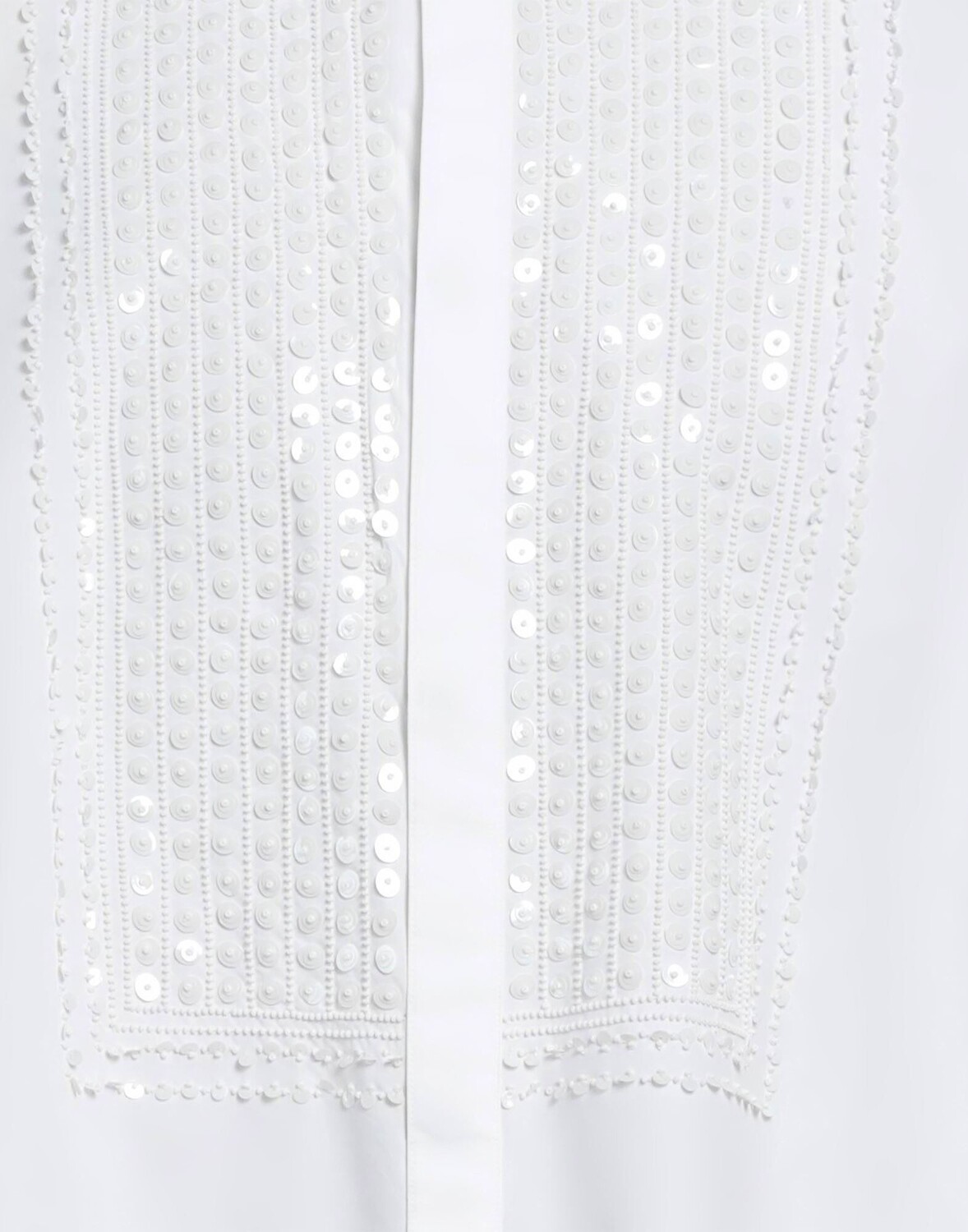 Ткань, пайетки, бисер, одноцветное изделие с аппликациями, воротник классический, длинные рукава, манжеты на пуговицах, без карманов, химчистка, нельзя сушить в стиральной машине, не отбеливать, рубашка обычного кроя