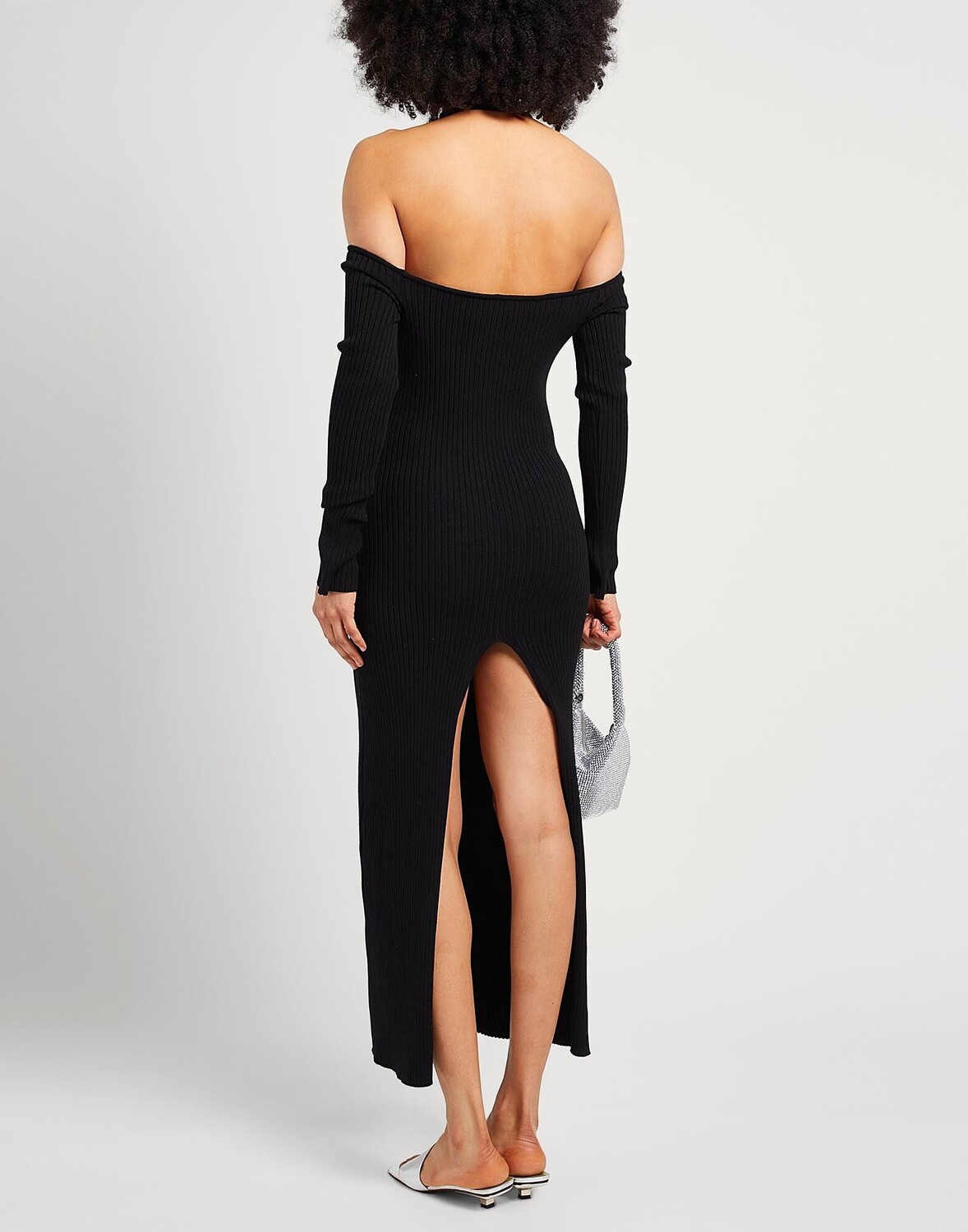 Трикотажное, в рубчик, легкий трикотаж, логотип бренда, одноцветное изделие, водолазка, длинные рукава, без подкладки, без карманов, химчистка, нельзя отбеливать, нельзя сушить в стиральной машине, нельзя гладить, облегающее платье