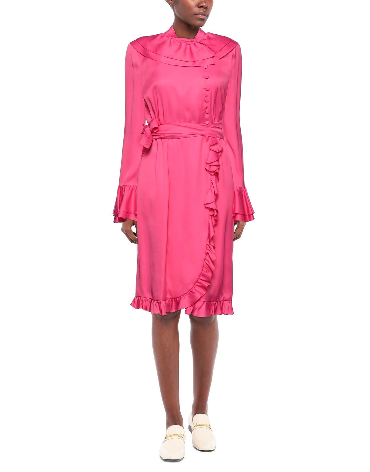 Платье с запахом, атлас, оборки, одноцветное изделие, круглый вырез, длинные рукава, без подкладки, на двух пуговицах, застежка на пуговицы, без карманов, содержит нетекстильные части животного происхождения