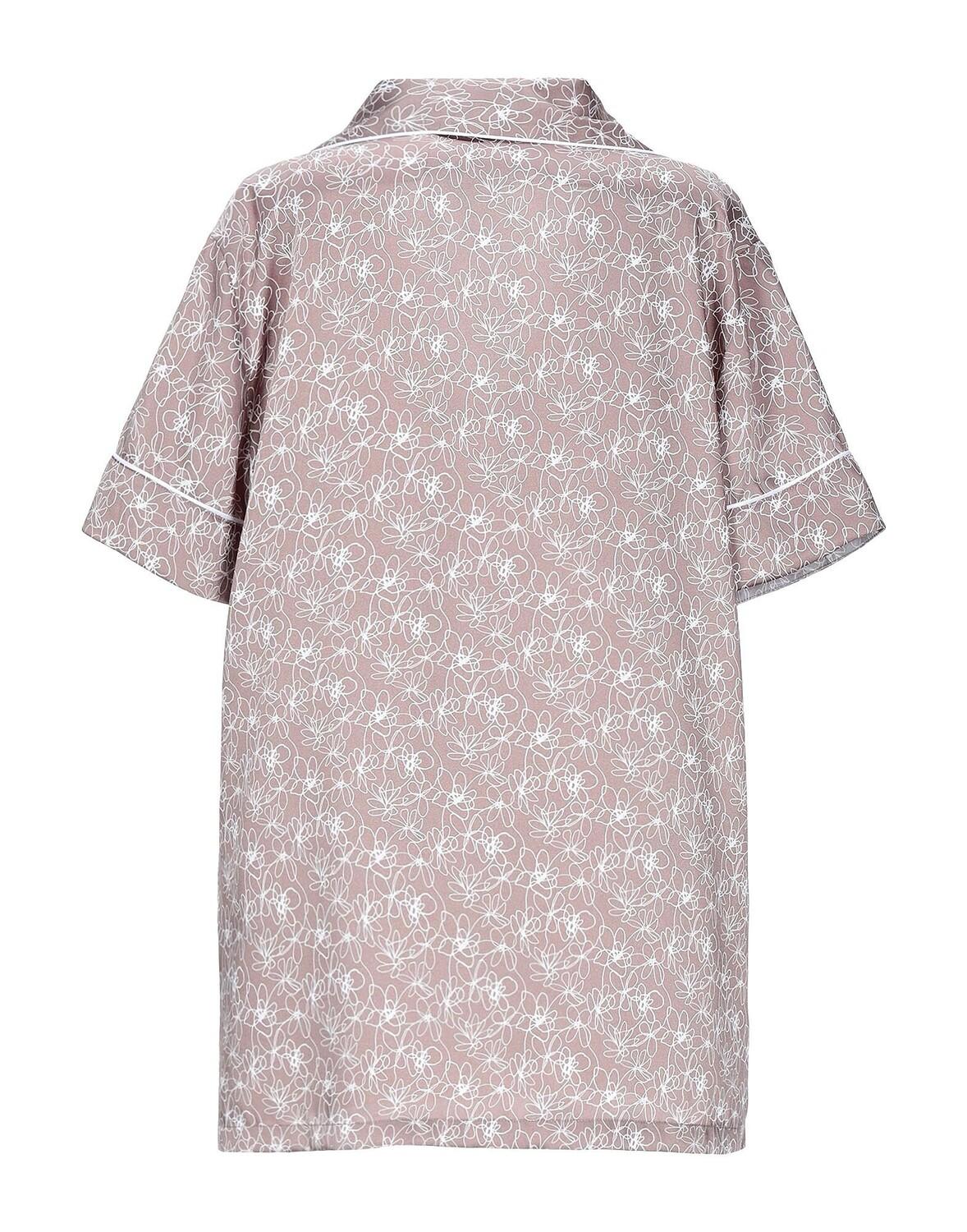 Саржа, без аппликаций, цветочный дизайн, застежка спереди, пуговицы, короткие рукава, один нагрудный карман, воротник с лацканами, маленький размер