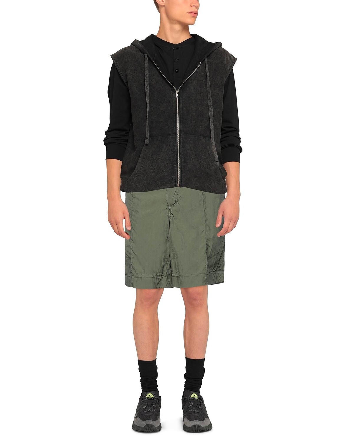 Техническая ткань, без аппликаций, одноцветное изделие, завышенная талия, резинка на талии, застежка на кнопки, застежка-молния, несколько карманов, большой размер